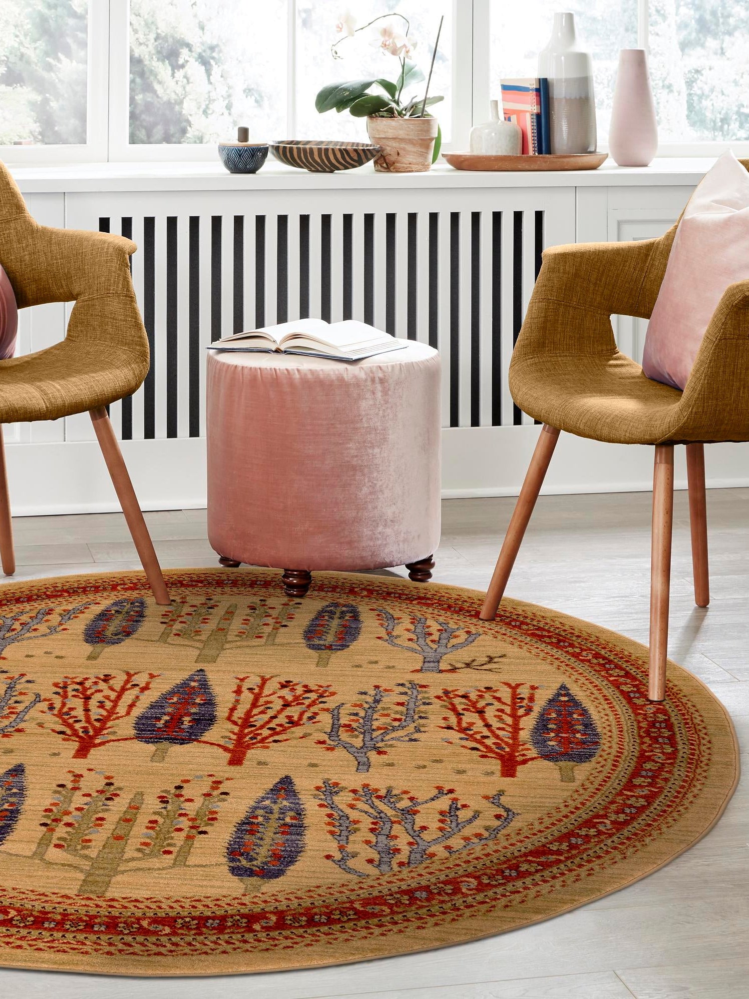 Tan 6' 1 x 6' 1 Fars Round Area Rug 100% Polypropylene Uniq...
