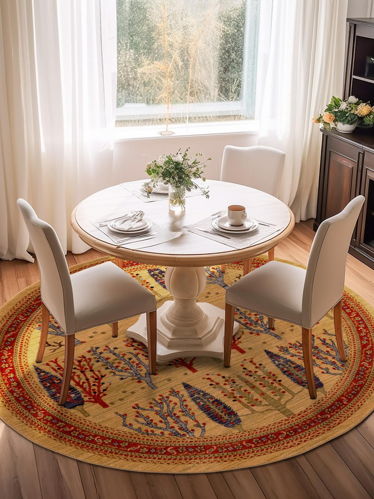 Washable Multicolor 5' x 5' Timeless Round Area Rug Easy to Clean Stain Resistant & Durable