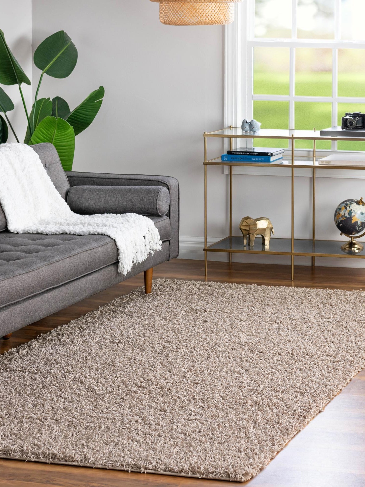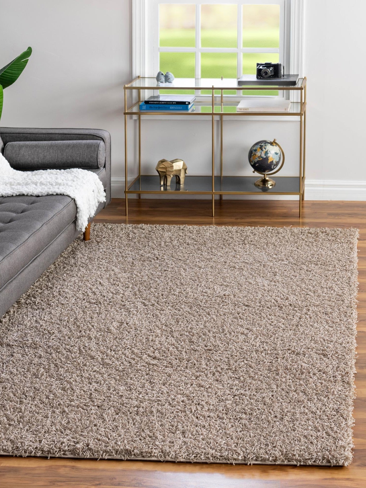 Taupe 4' x 6' Comfort Solid Shag Rectangle Area Rug Thick S...