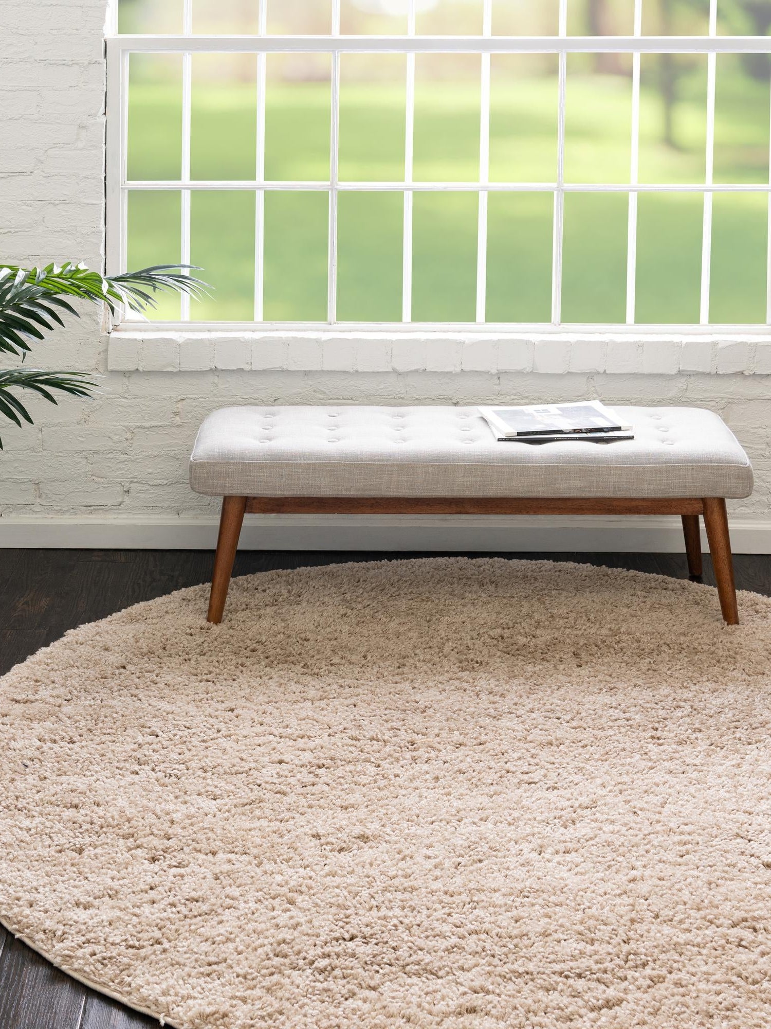 Taupe 5' x 5' Everyday Shag Round Area Rug Thick Soft Touch Fluffy & Plush Shaggy Pile 100% Polypropylene With Cotton Backing Durable Carpet