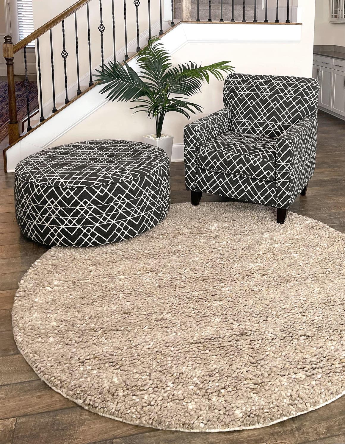 - Perfect Size and Shape: Measuring 6' 1" in diameter, this round rug is ideal for various spaces in your home. Whether used in a cozy living room, a stylish bedroom, or even a chic office, its unique round shape adds a modern touch. Its ample size allows for versatile placement, creating a focal point in any area.