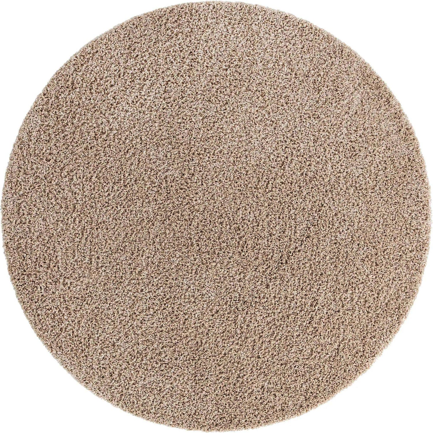 Taupe 7' 1 x 7' 1 Solid Shag Round Area Rug Thick Soft Touch Fluffy & Plush Shaggy Pile