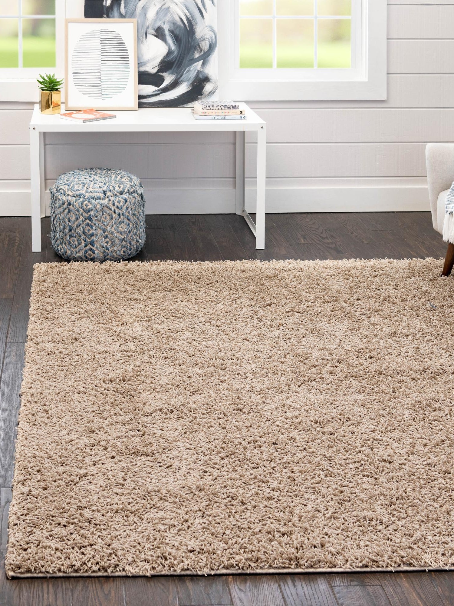Taupe 7' x 7' Comfort Solid Shag Square Area Rug Thick Soft Touch Fluffy & Plush Shaggy Pile 100% Polypropylene for Living Room, Office, Bedroom