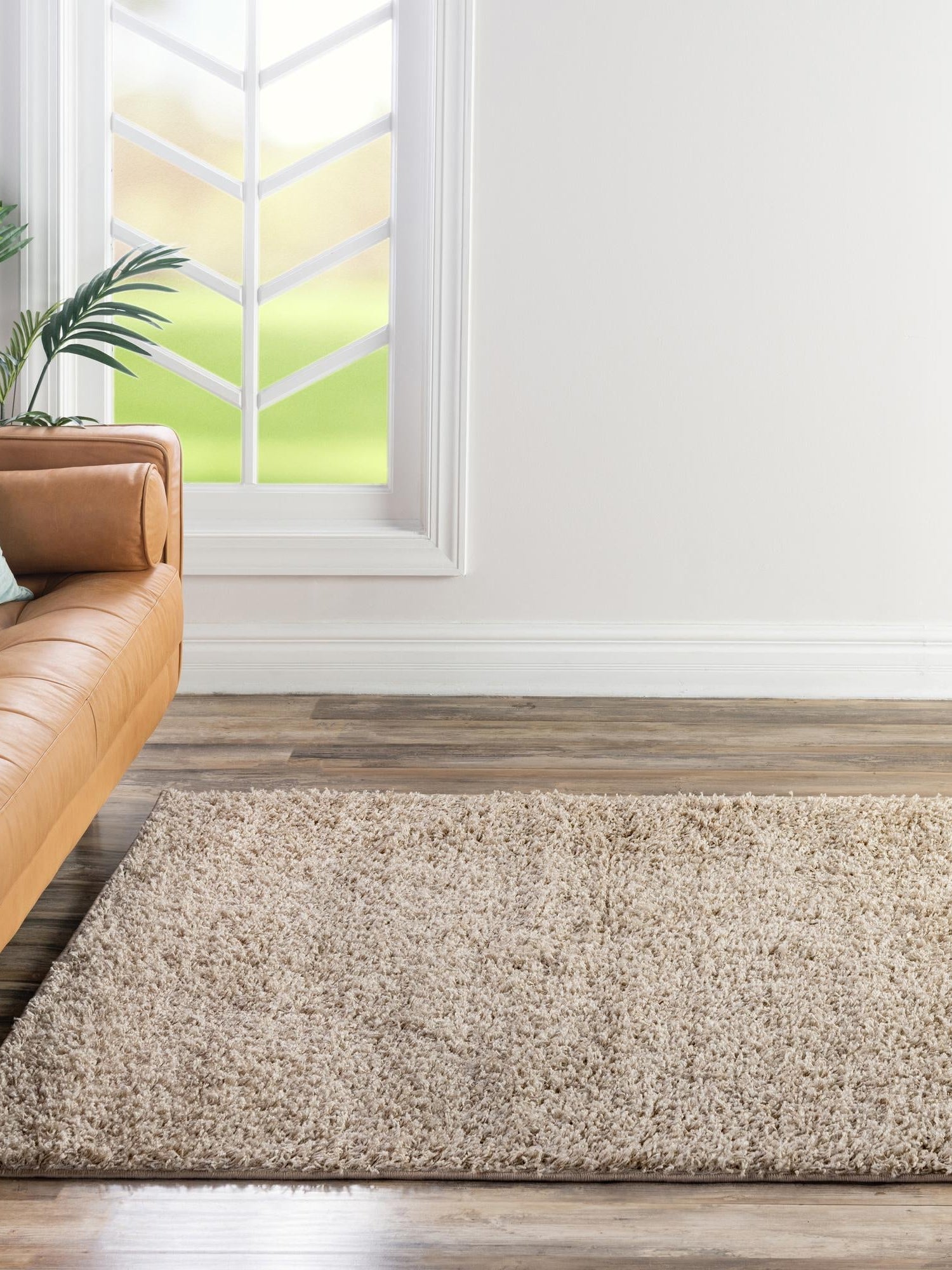 Taupe 7' 10 x 7' 10 Everyday Shag Square Area Rug Thick Soft Touch Fluffy & Plush Shaggy Pile 100% Polypropylene With Cotton Backing Durable Carpet