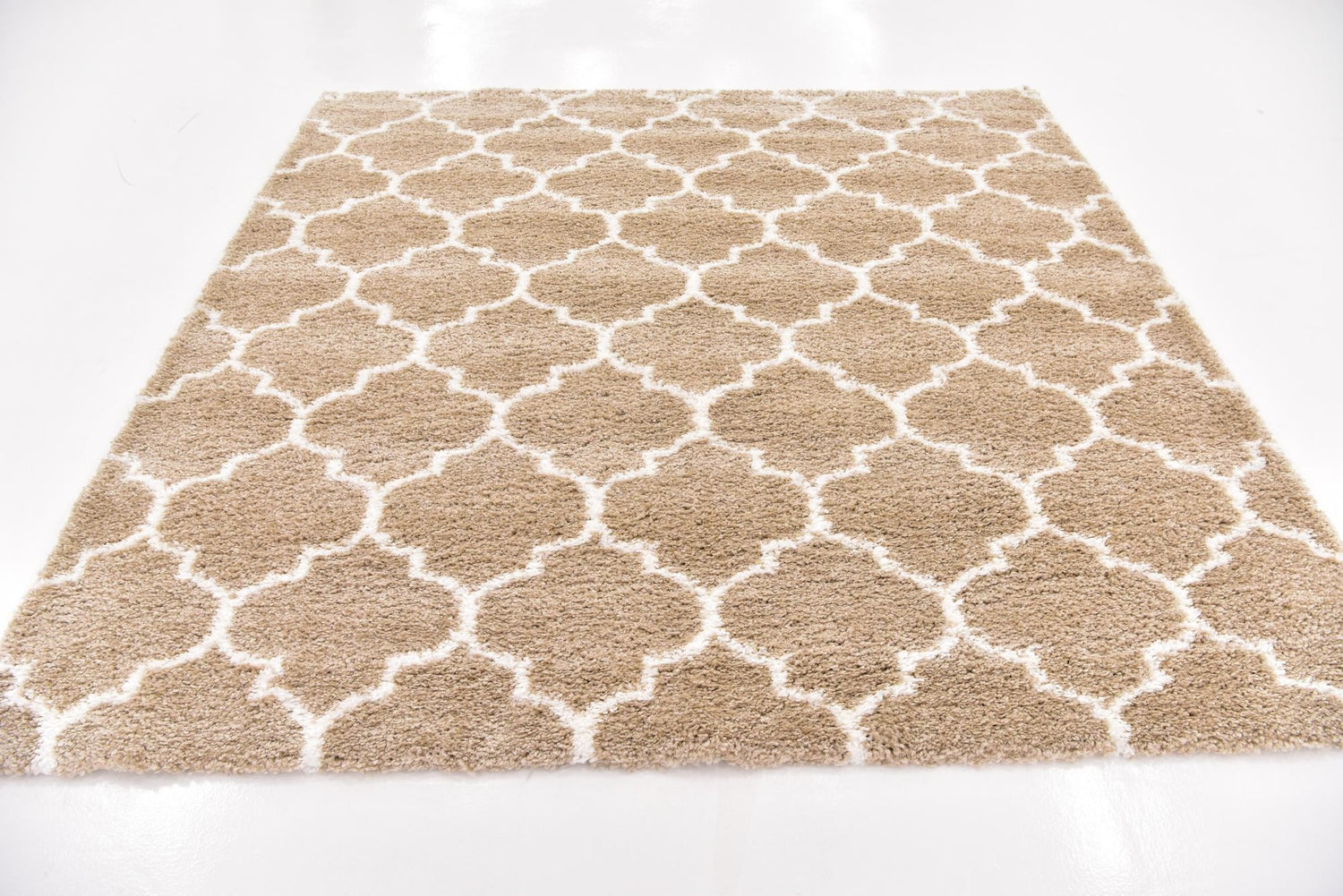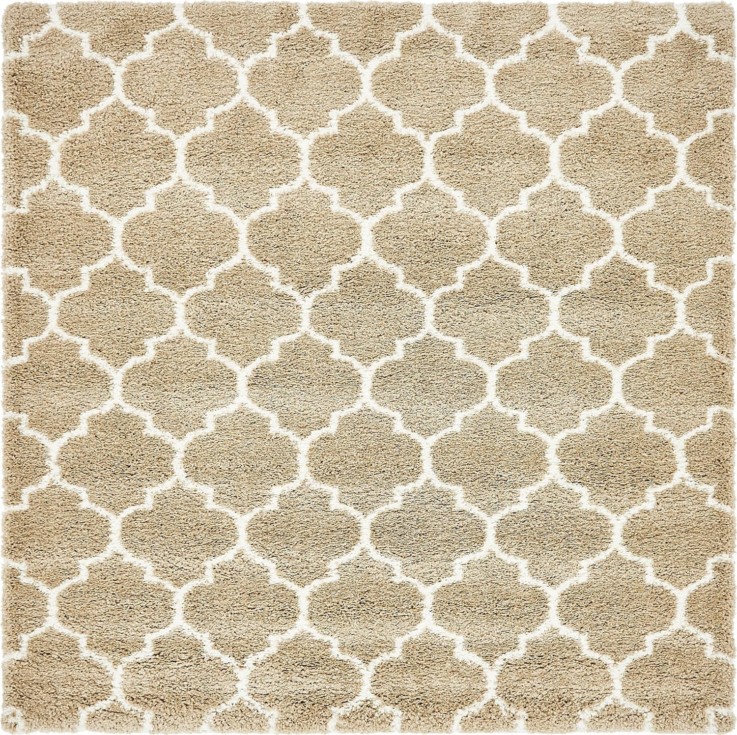 Taupe 8' x 8' Rabat Shag Square Area Rug Thick Soft Touch Fluffy & Plush Shaggy Pile
