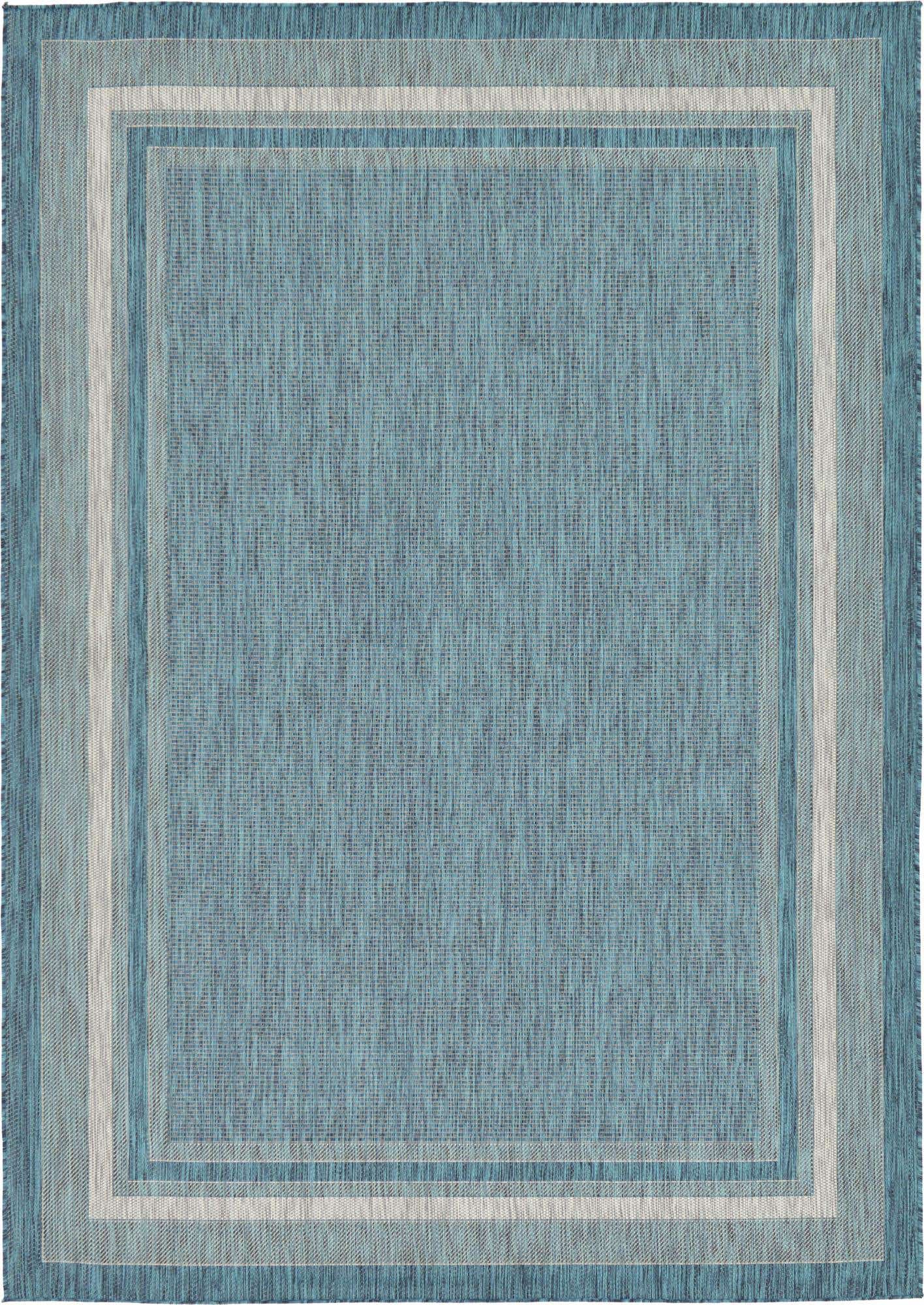 Teal 7' 1 x 10' Outdoor Border Rectangle Area Rug Weather Resistant for Patio, Deck, Terrace, Balcony, Porch
