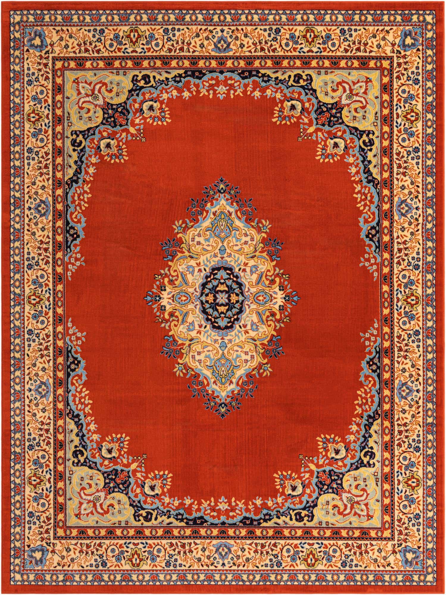 Terracotta 10' x 13' 1 Reza Rectangle Area Rug 100% Polypropylene Easy Clean Traditional Motif Classic Carpet for Home Interiors