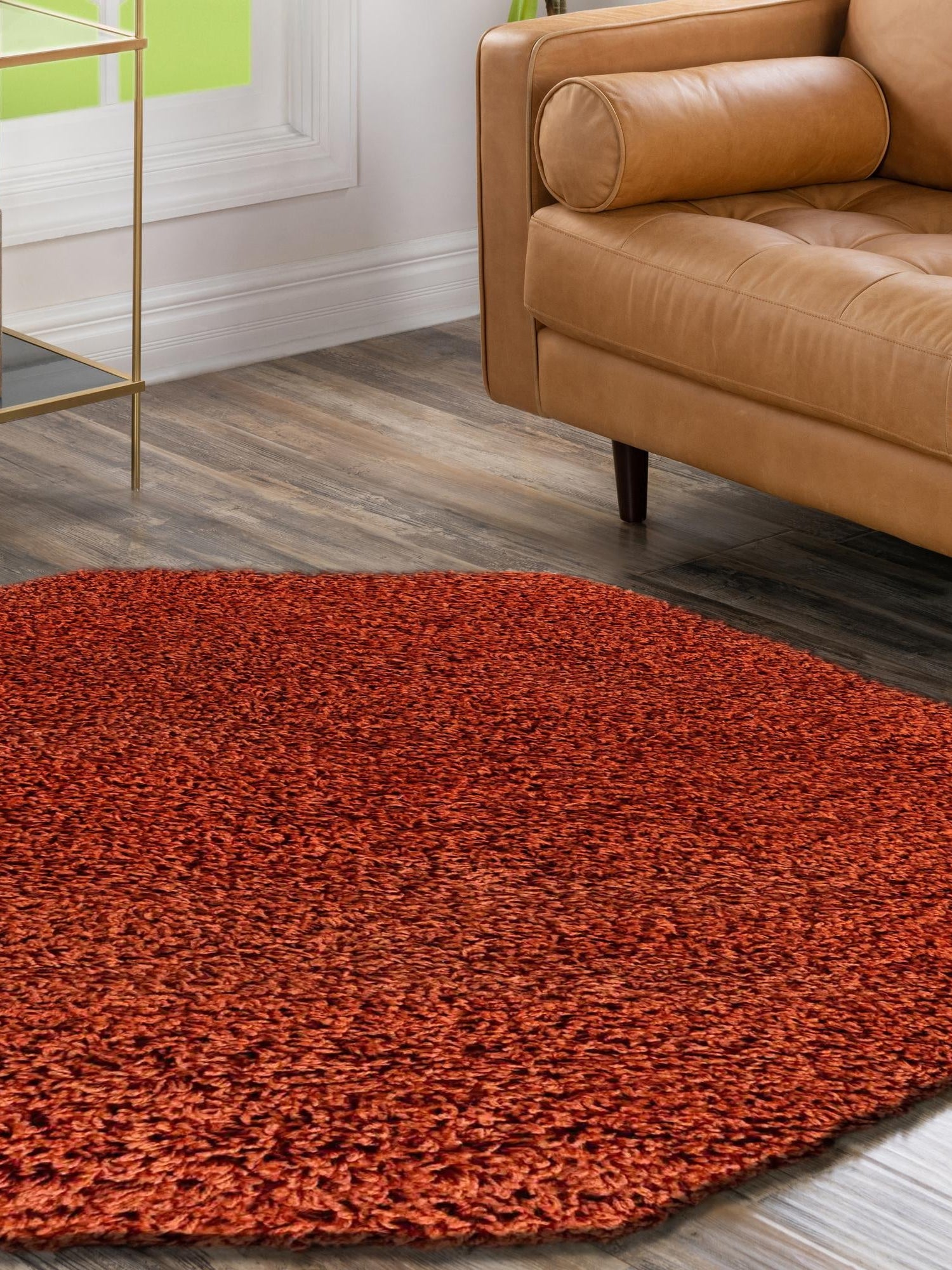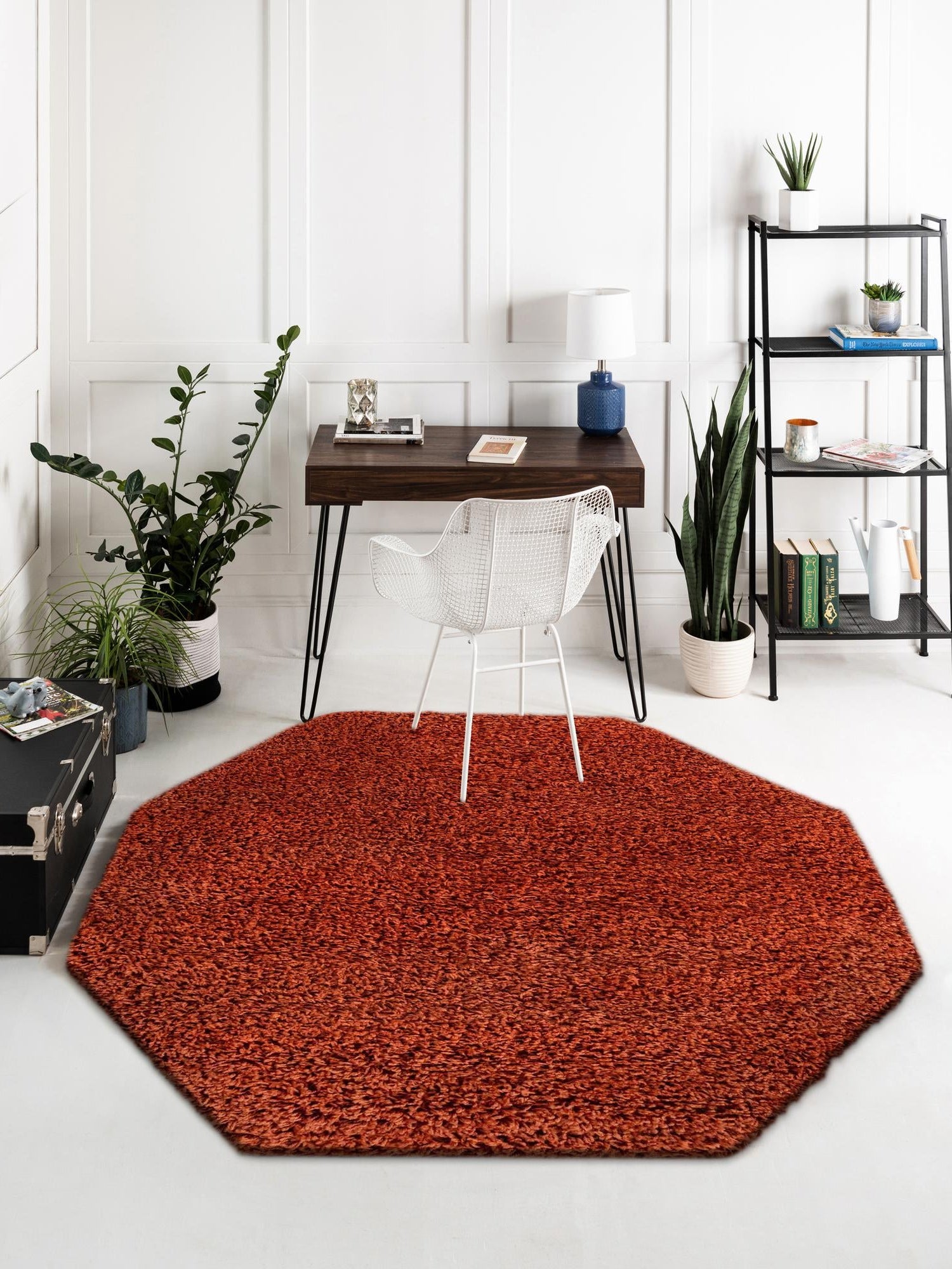 Terracotta 4' 1 x 4' 1 Solid Shag Octagon Area Rug Thick Soft Touch Fluffy & Plush Shaggy Pile