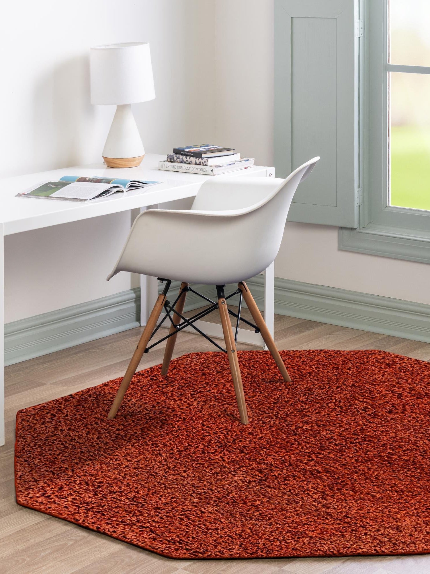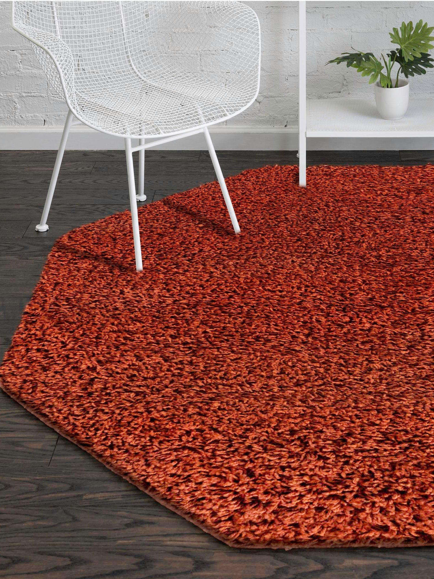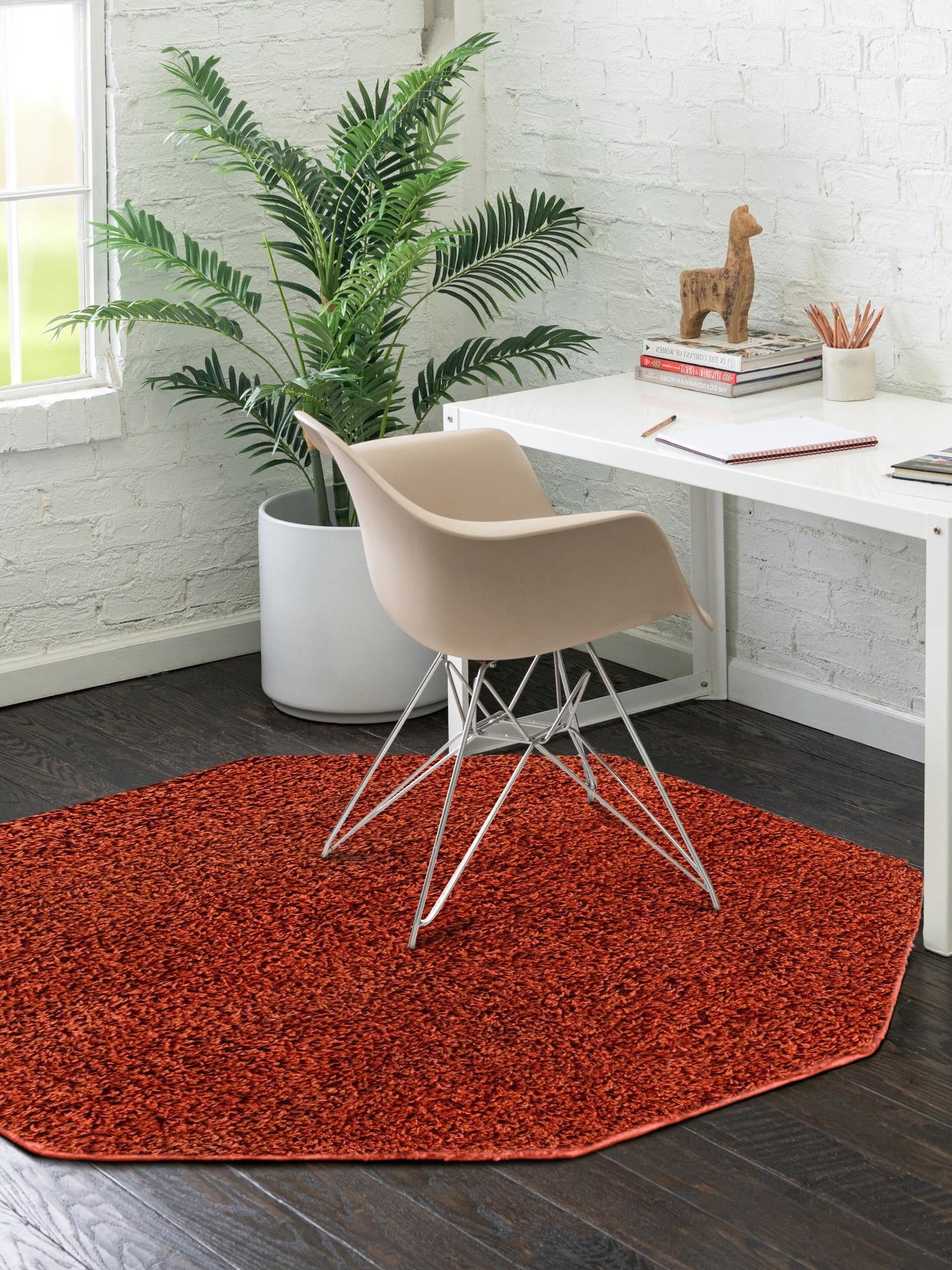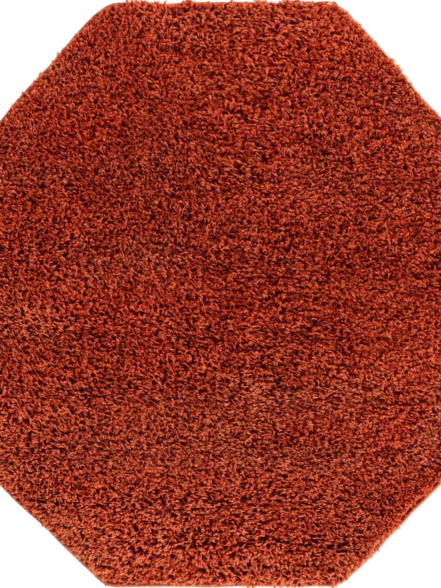 Terracotta 4' 1 x 4' 1 Solid Shag Octagon Area Rug Thick So...