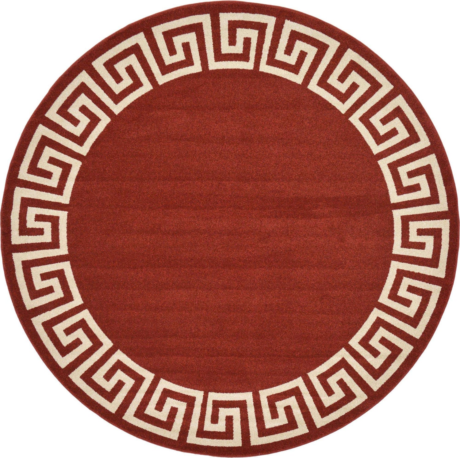 Terracotta 7' 10 x 7' 10 Athens Round Area Rug 100% Polypropylene With Cotton Backing Easy Clean Indoor Living Dining Room Bedroom Office Carpet