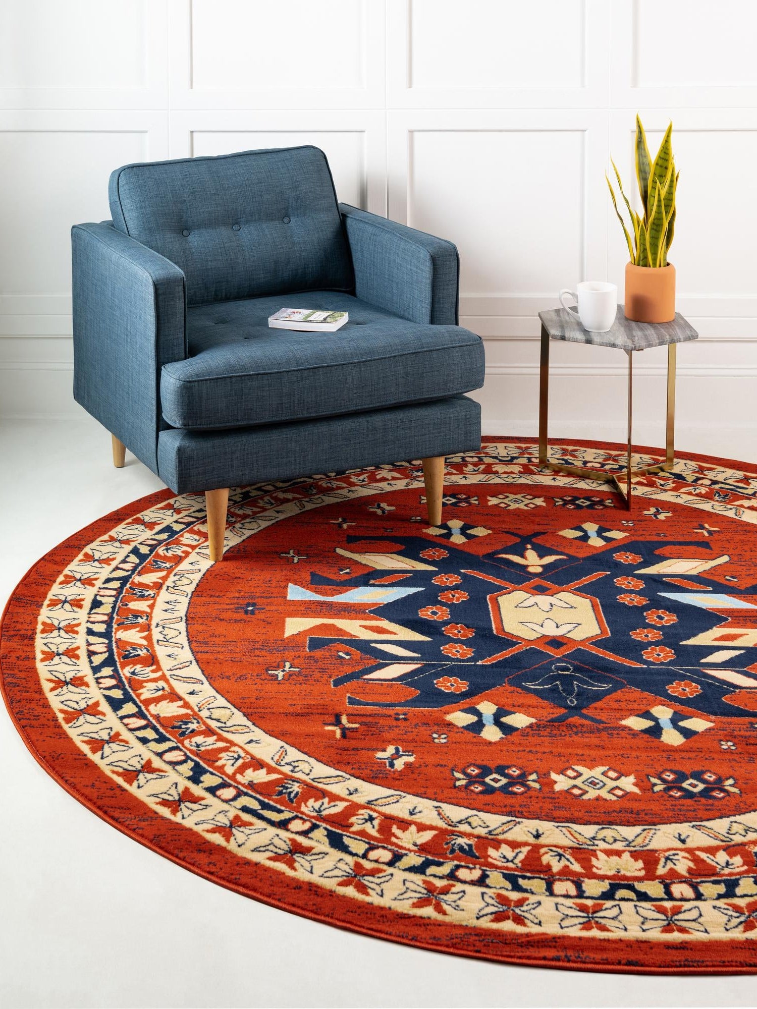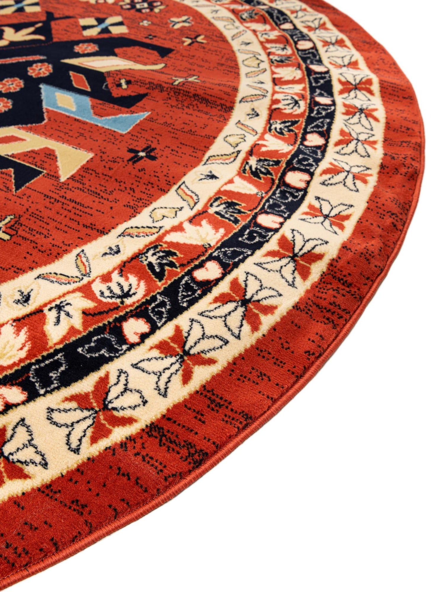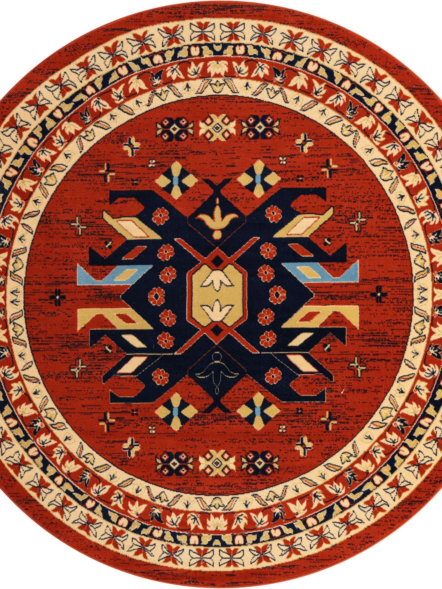 Washable Vintage Rust Red 2' x 2' Timeless Round Area Rug Easy to Clean Stain Resistant & Durable