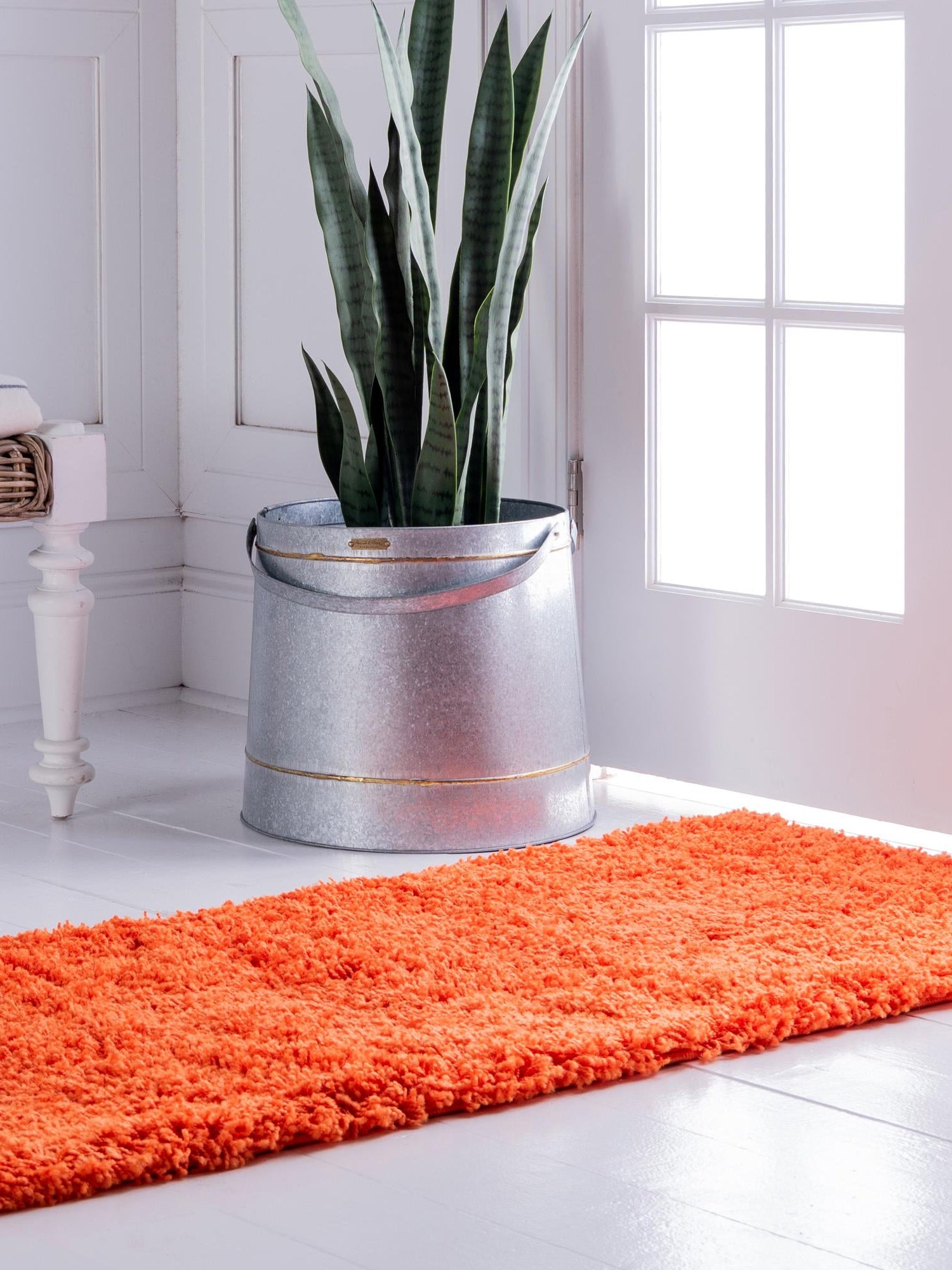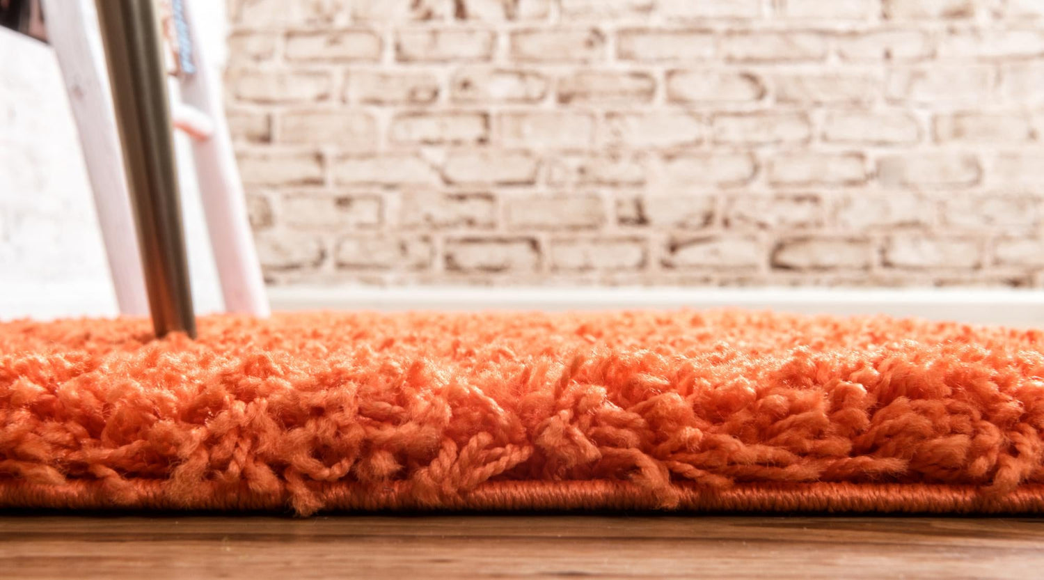 Tiger Orange 2' 1 x 6' 5 Solid Shag Runner Area Rug Thick S...