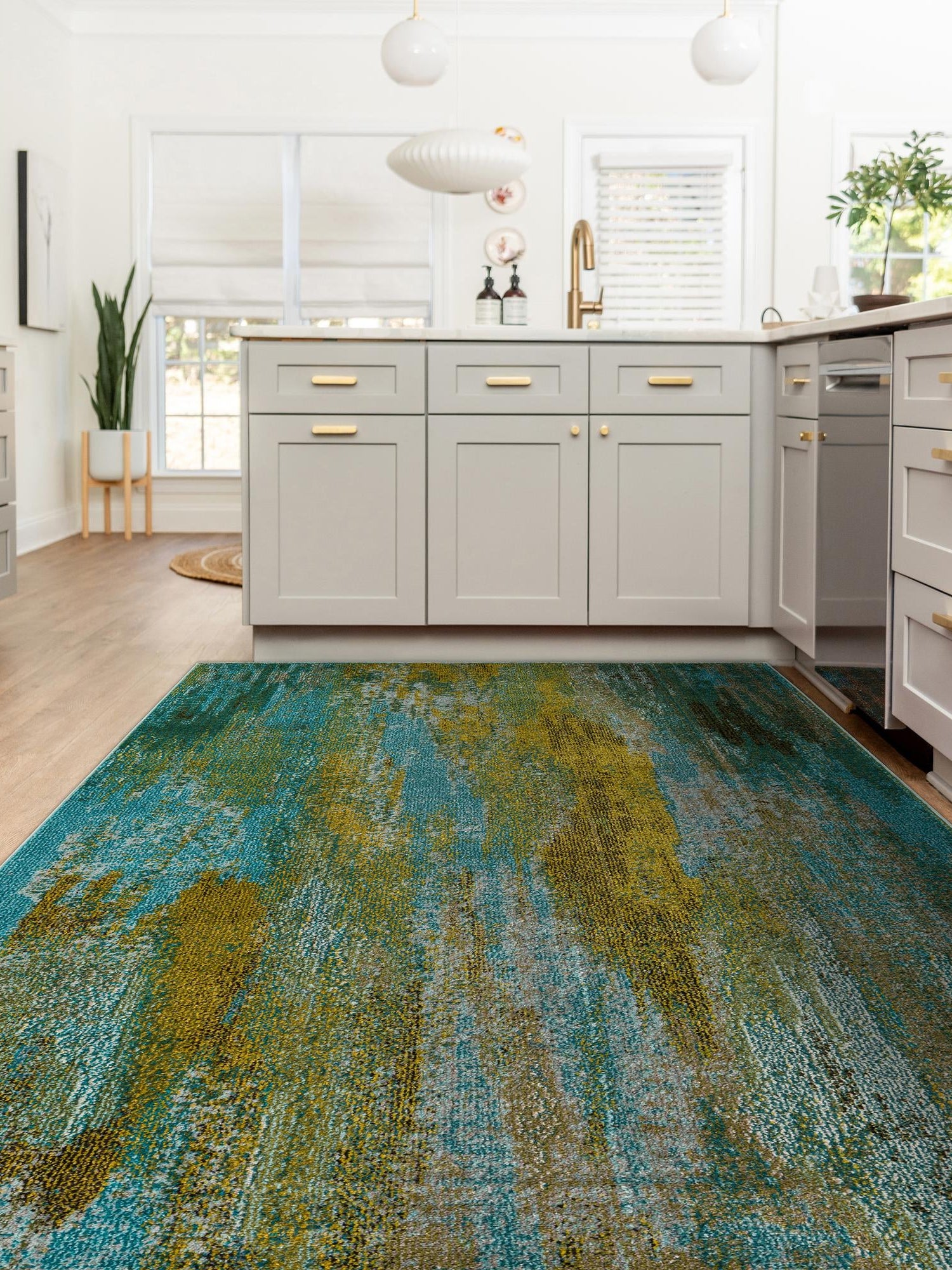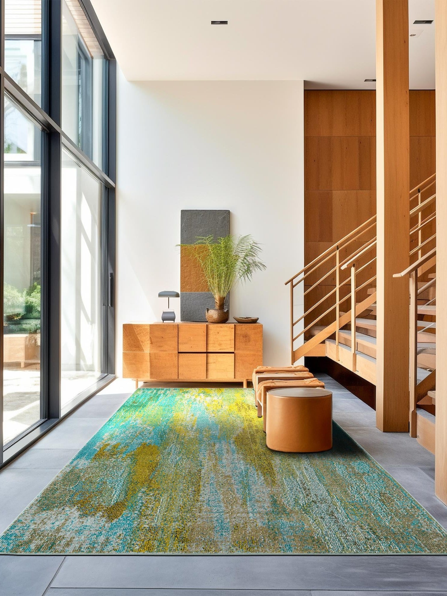 - Stunning Turquoise Color: The bright turquoise hue of this rug brings a refreshing splash of color to your home decor. Its eye-catching shade is perfect for modern aesthetics, effortlessly complementing your existing furniture and accessories. This rug not only adds style but also creates a lively atmosphere in any room.