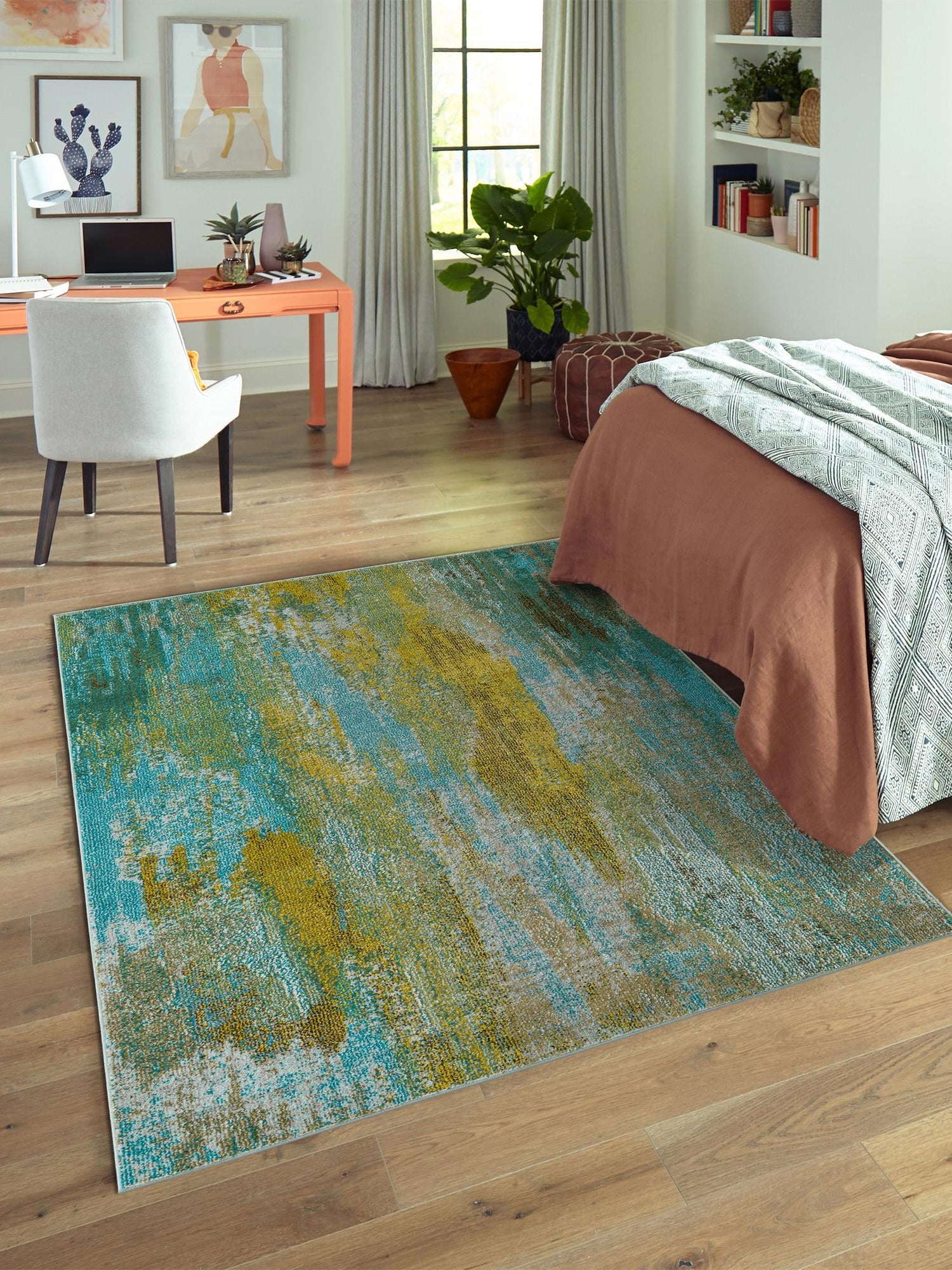Turquoise 2' 2 x 3' 1 Jardin Rectangle Area Rug 100% Polypropylene With Cotton Backing Colorful & Vivid Modern Carpet for Home Decor