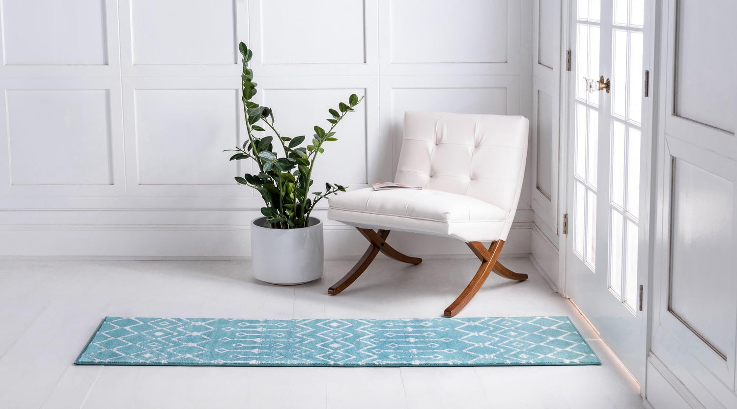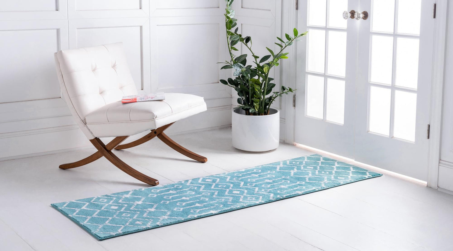 Washable Arctic Aqua Blue 2' 2 x 6' Medina Runner Area Rug Easy to Clean Stain Resistant & Durable