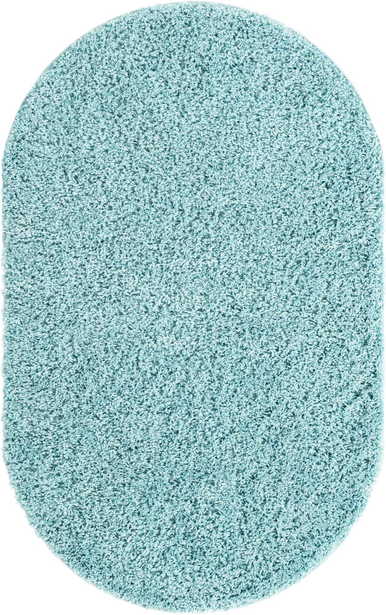 Turquoise 3' 3 x 5' 3 Everyday Shag Oval Area Rug Thick Soft Touch Fluffy & Plush Shaggy Pile 100% Polypropylene With Cotton Backing Durable Carpet