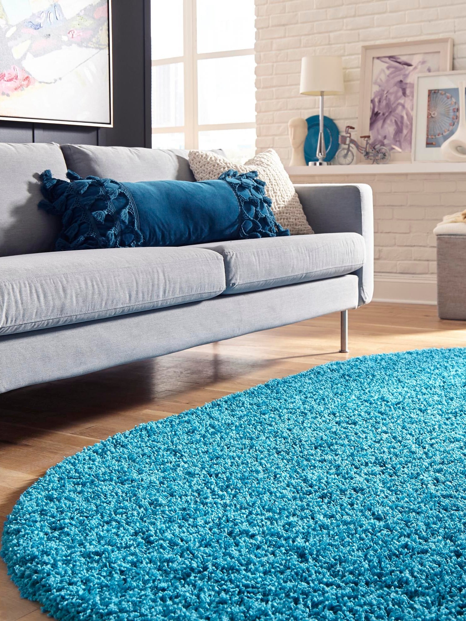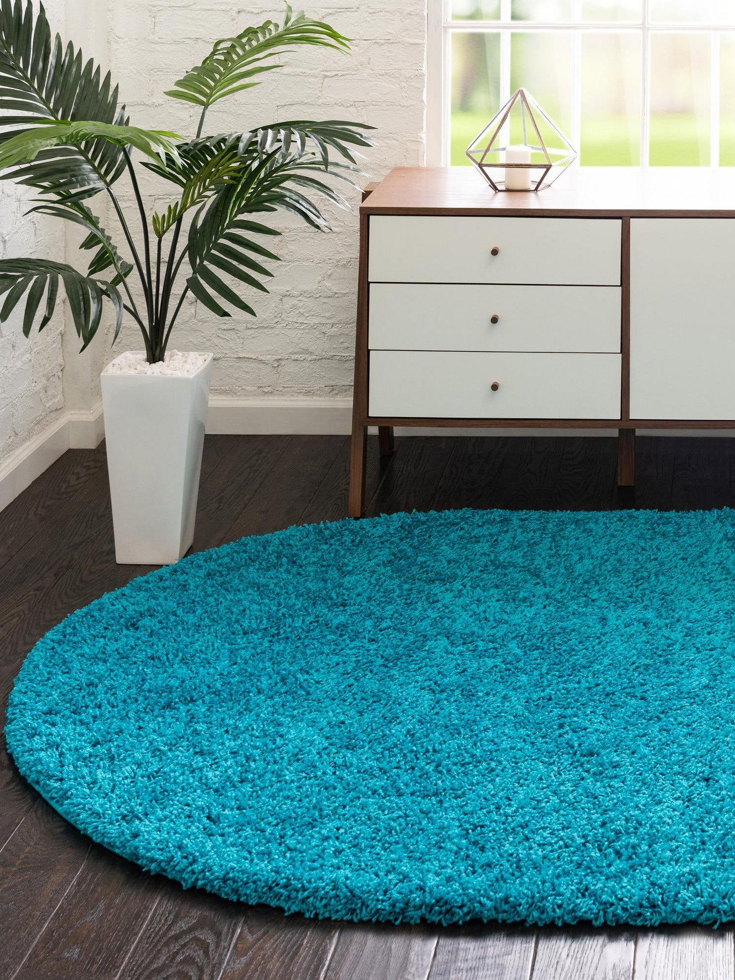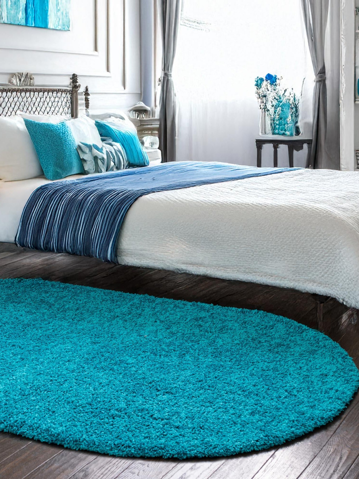 Turquoise 3' 1 x 5' 3 Solid Shag Oval Area Rug Thick Soft T...