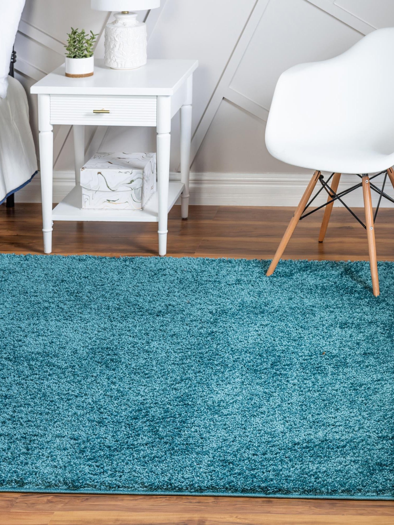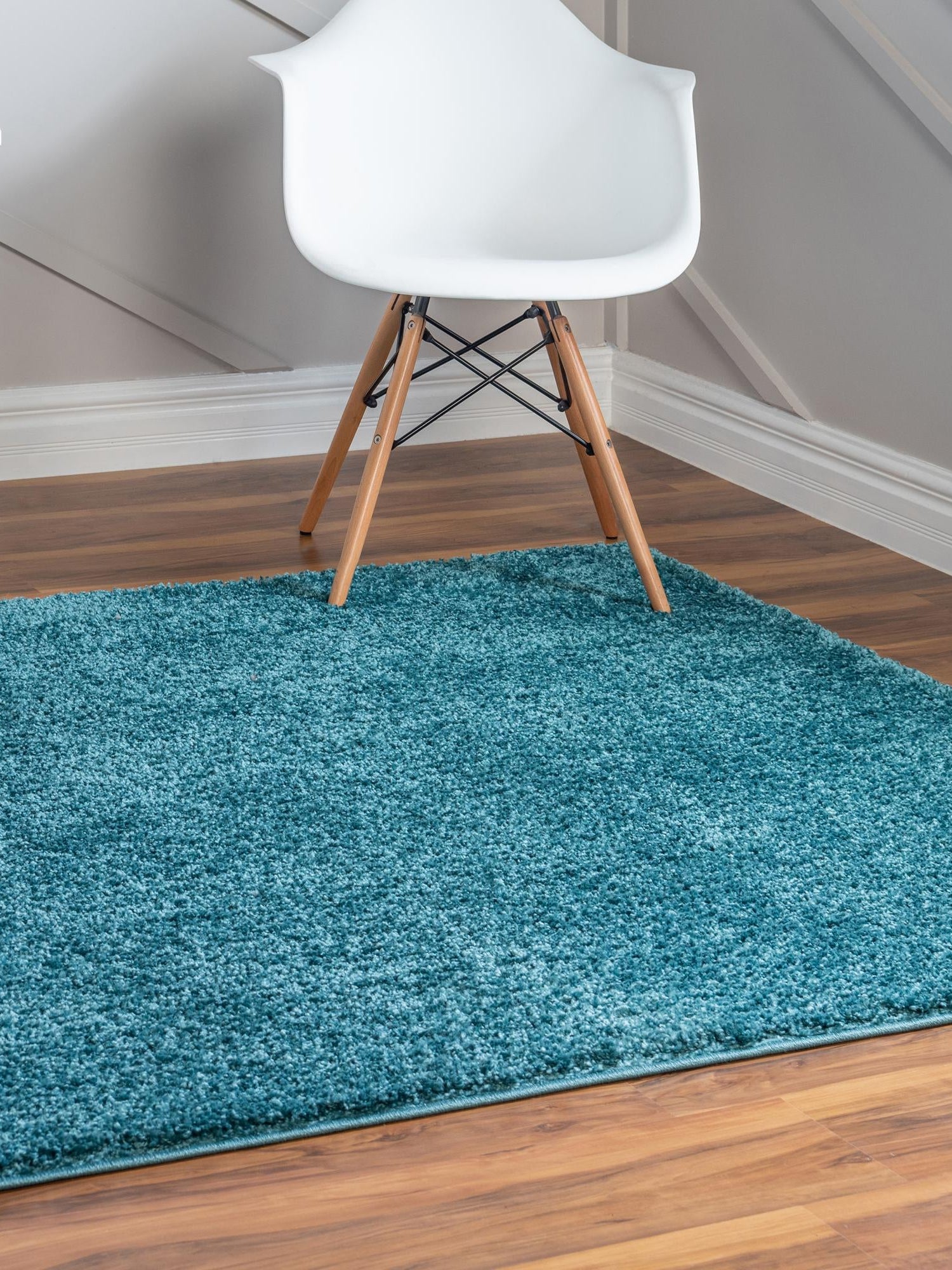 Turquoise 4' 1 x 4' 1 Soft Solid Shag Square Area Rug Thick...