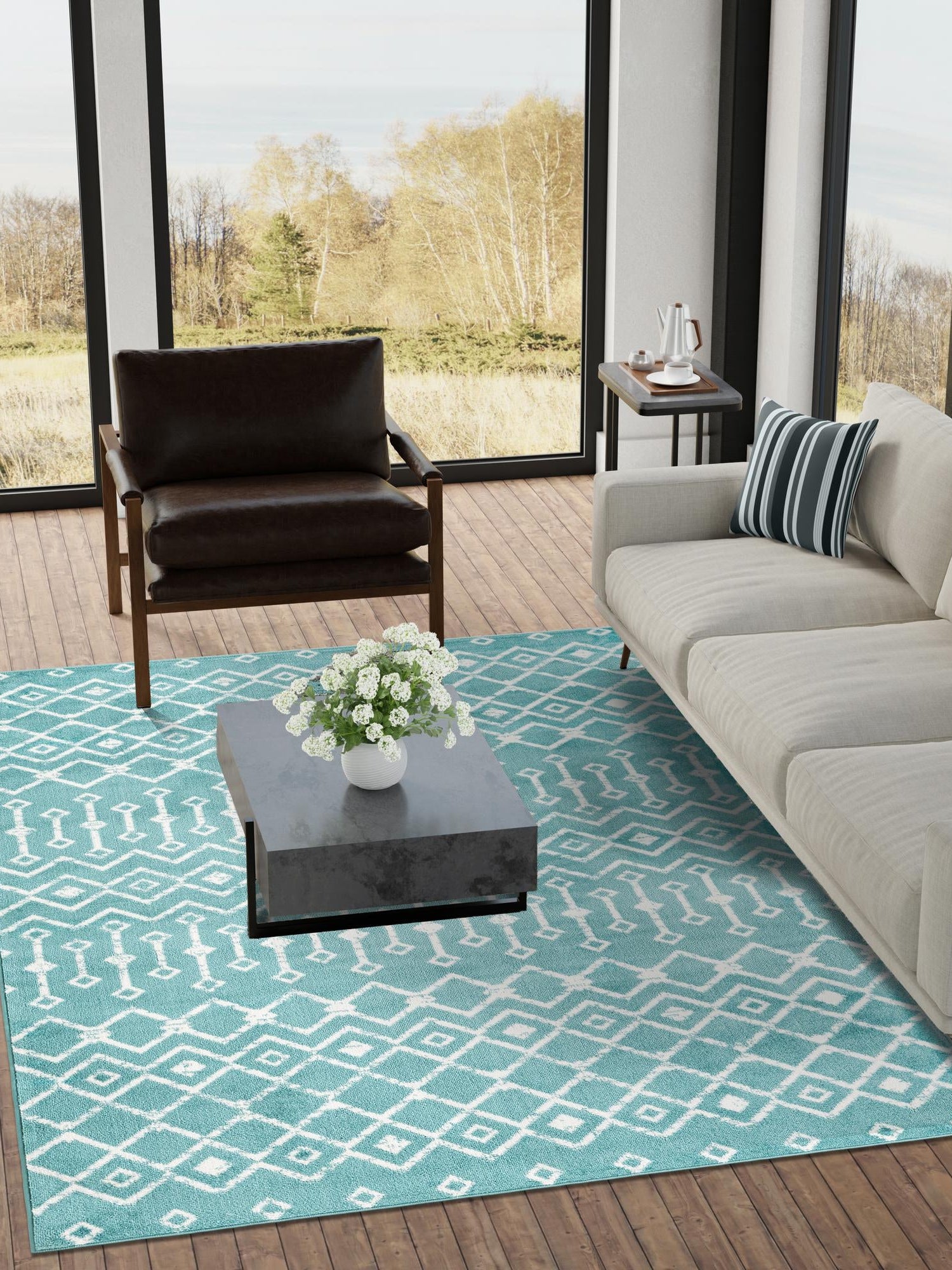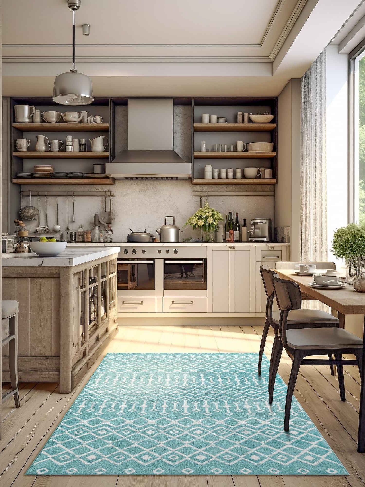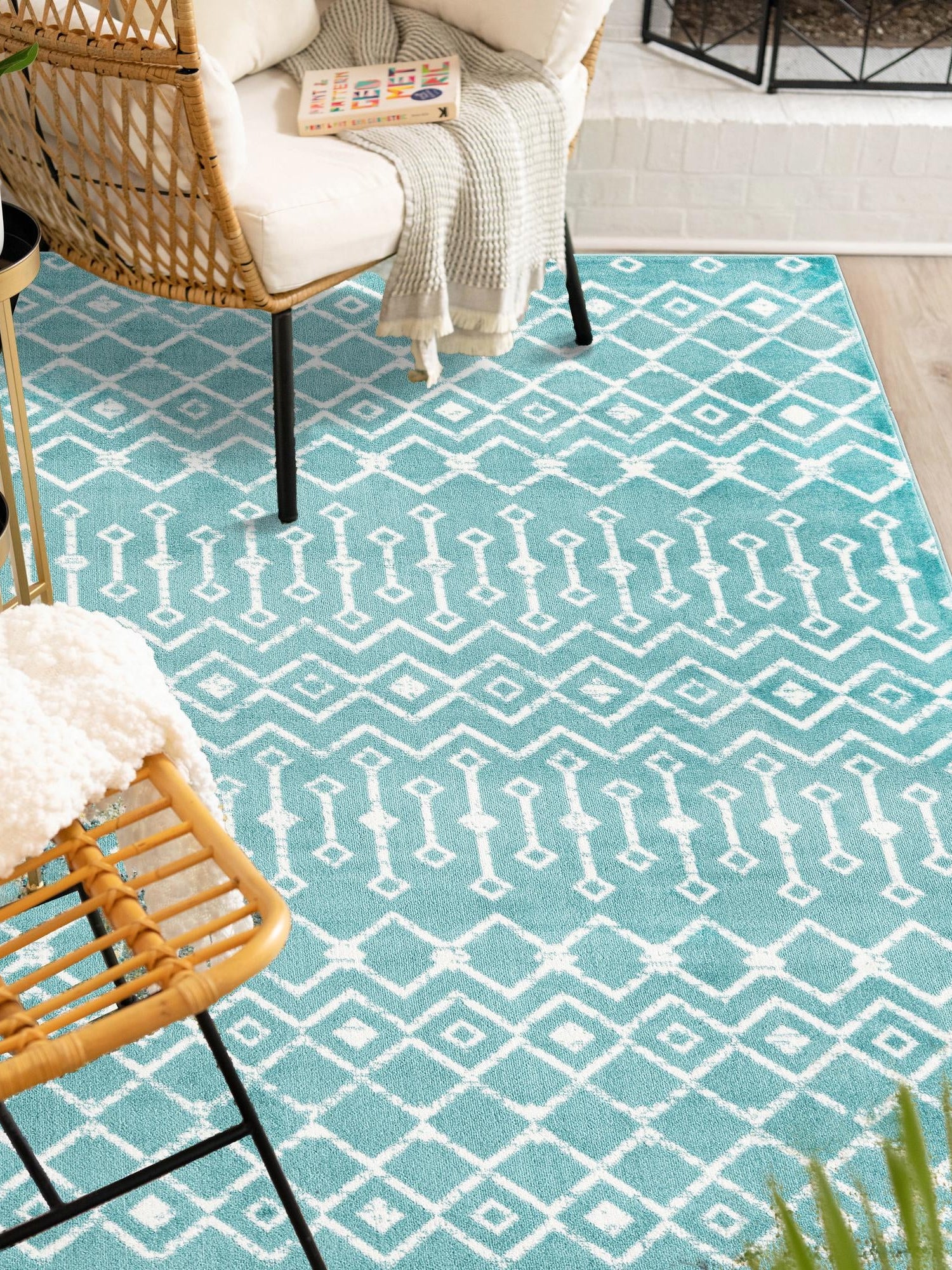 - Striking Color Palette: Featuring a vibrant turquoise hue, this rug adds a refreshing pop of color to your décor. The lively tone not only energizes a room but also pairs beautifully with various color schemes and styles. Create a cheerful atmosphere that invites both relaxation and inspiration.