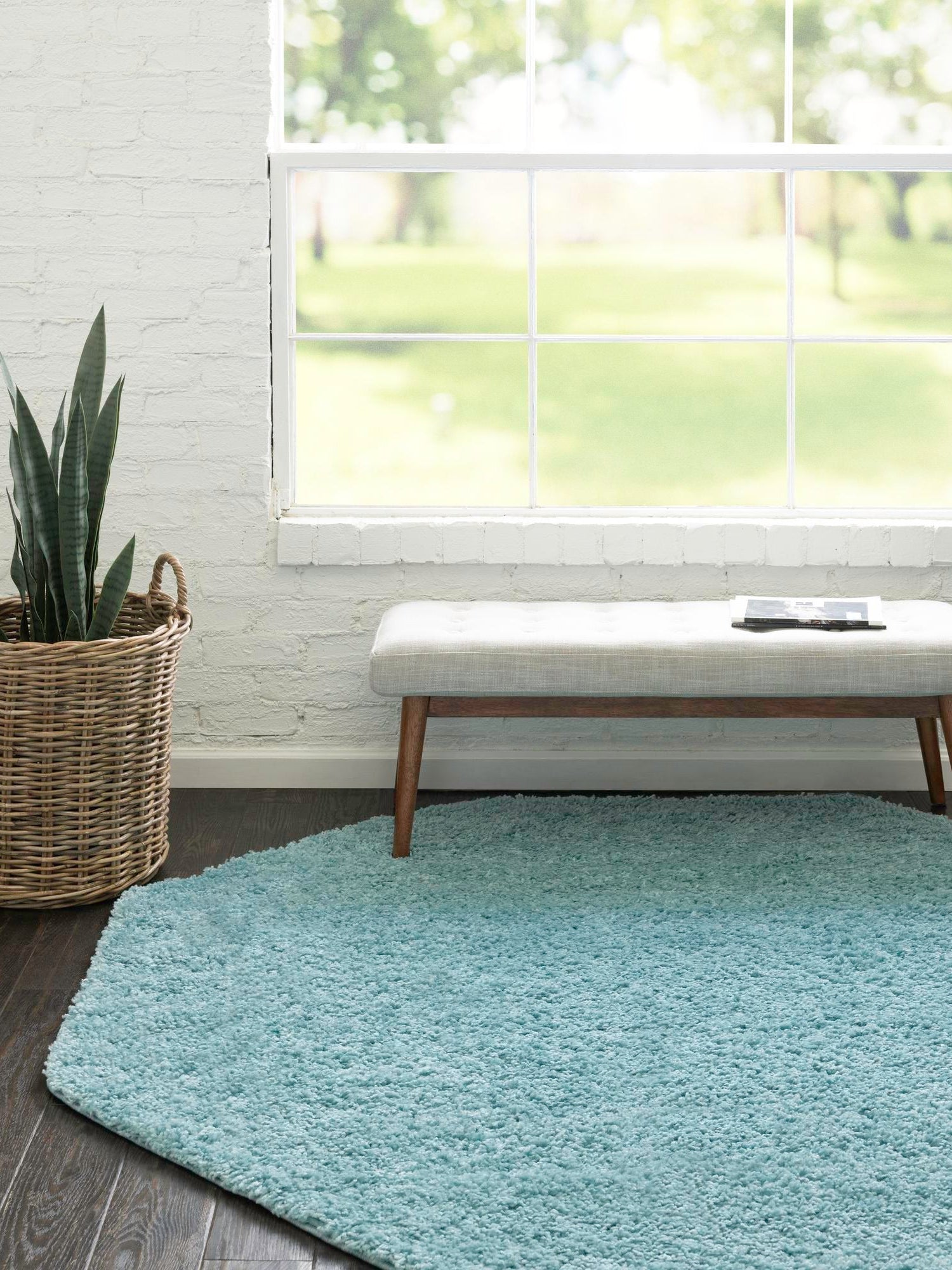 Turquoise 4' x 4' Everyday Shag Octagon Area Rug Thick Soft Touch Fluffy & Plush Shaggy Pile 100% Polypropylene With Cotton Backing Durable Carpet