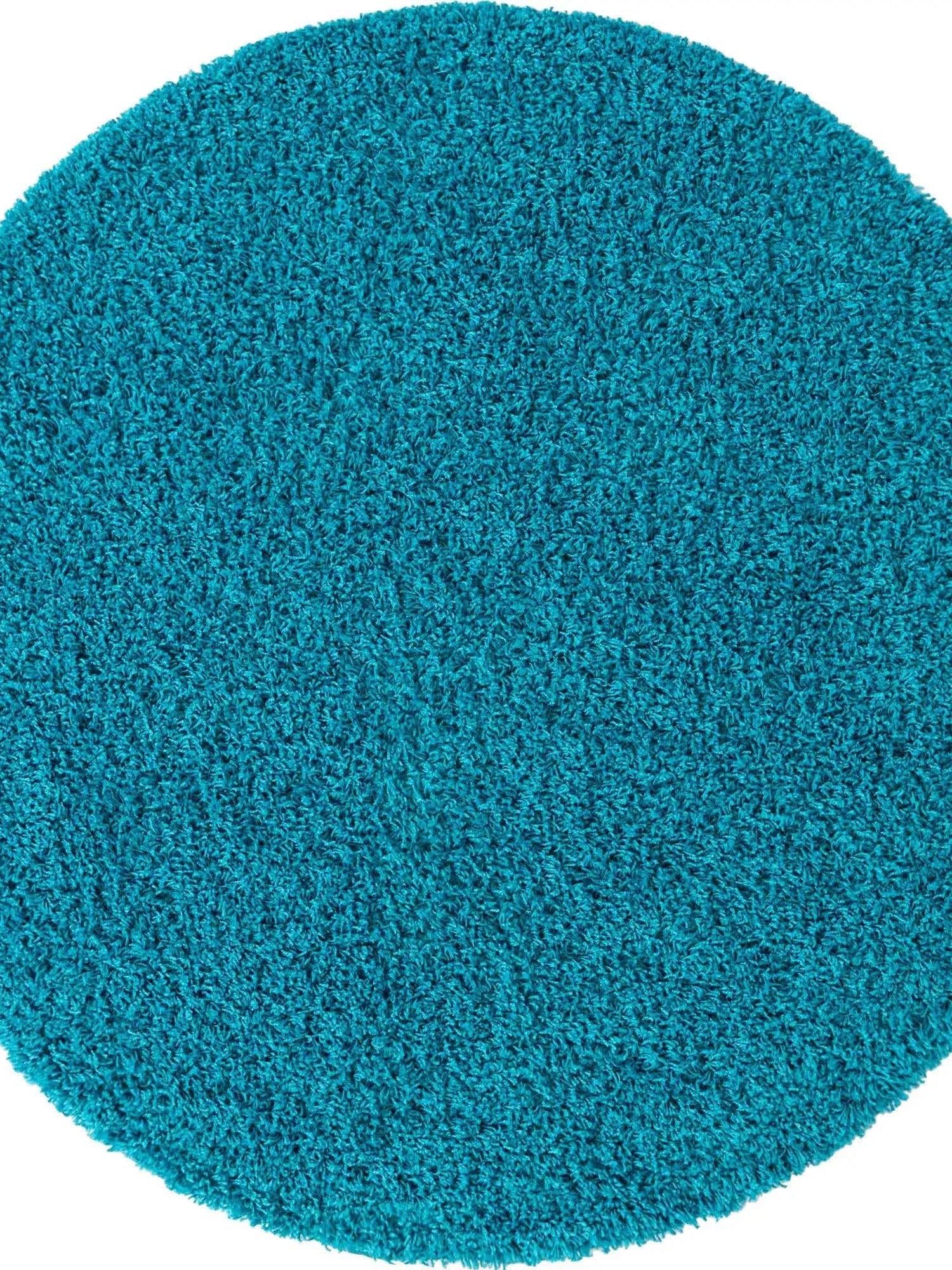 Turquoise 5' 3 x 5' 3 Solid Shag Round Area Rug Thick Soft ...