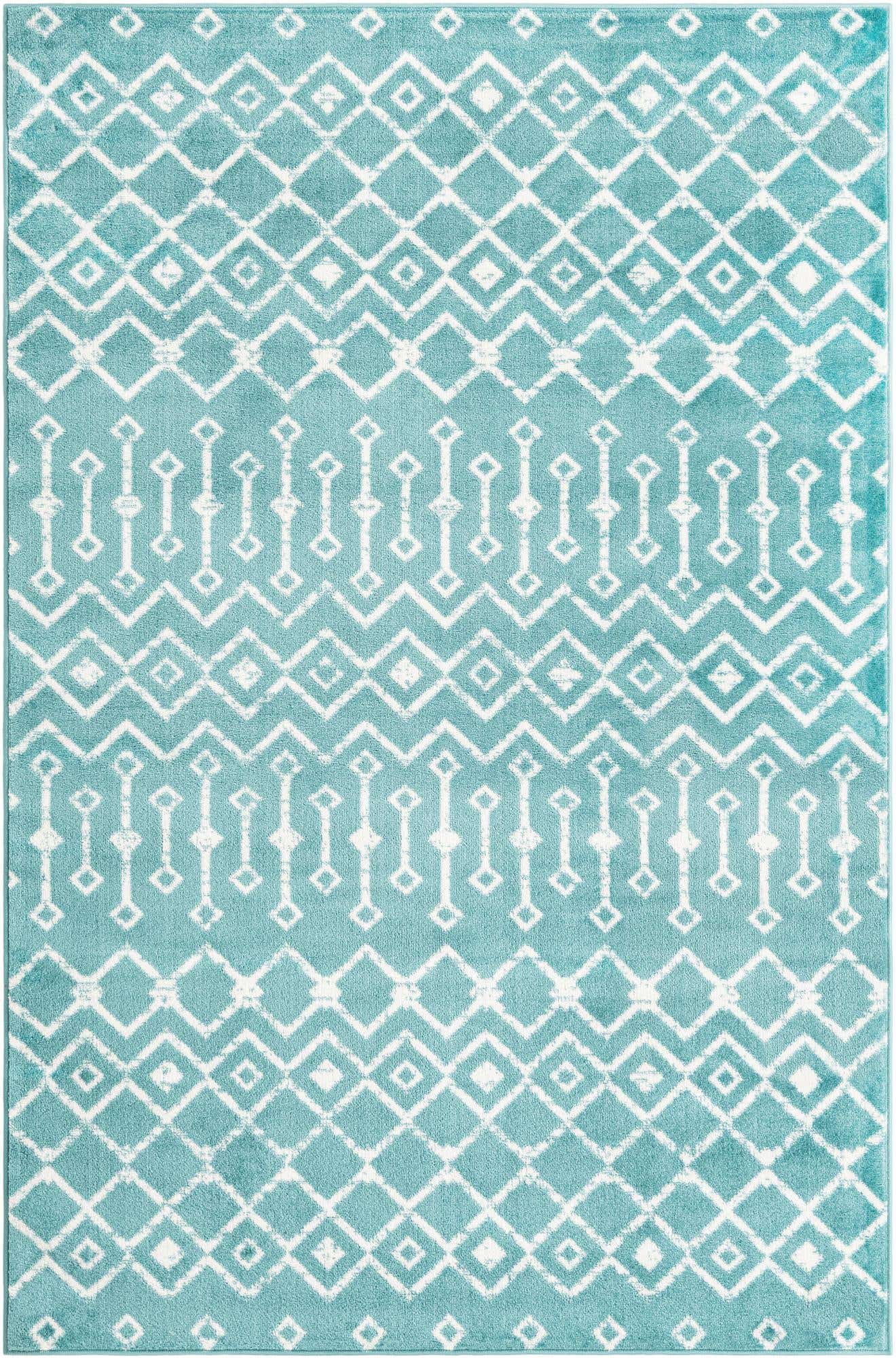 Turquoise 5' 3 x 8' Moroccan Trellis Rectangle Area Rug