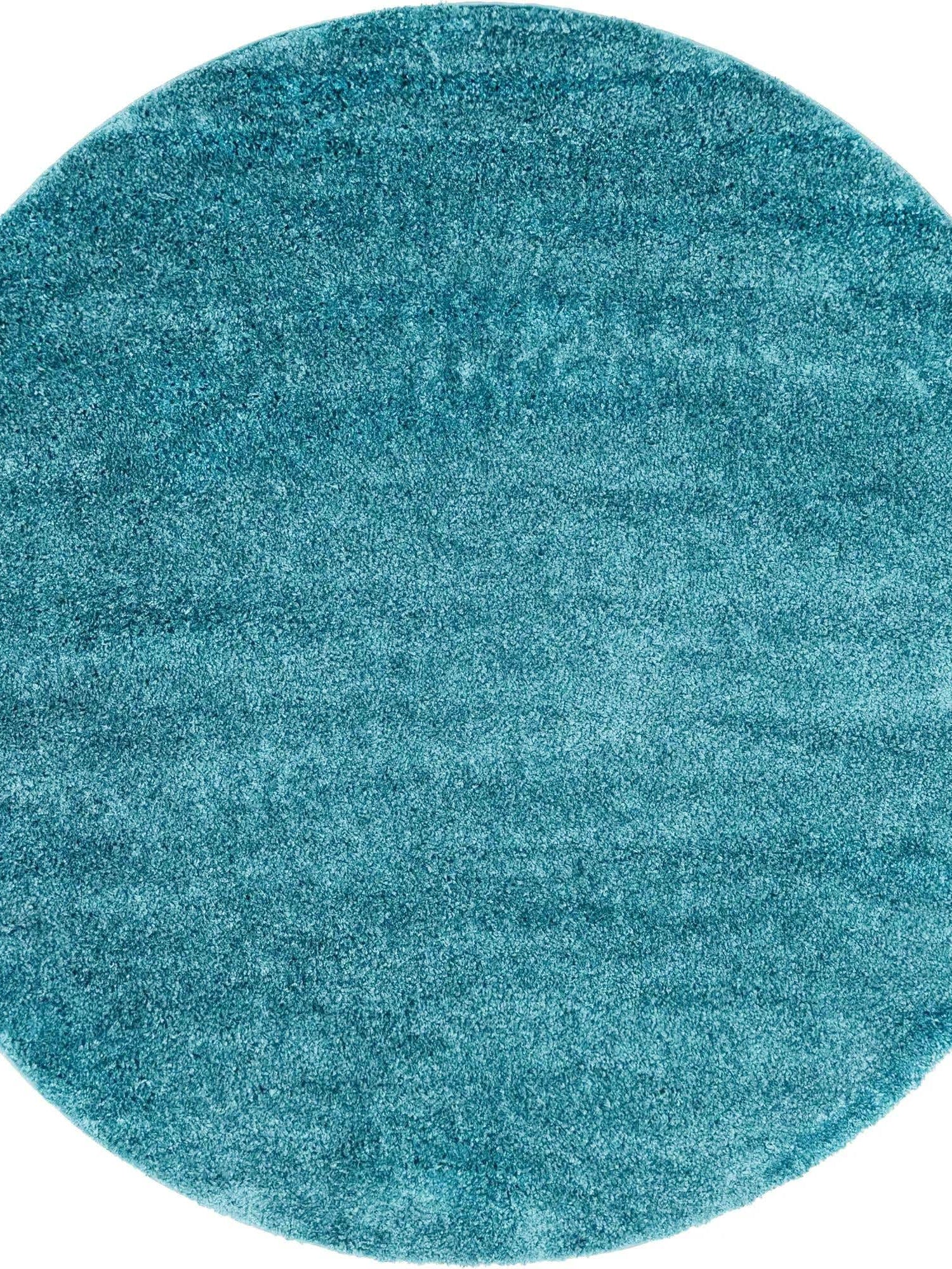 Turquoise 6' 1 x 6' 1 Soft Solid Shag Round Area Rug Thick Soft Touch Fluffy & Plush Shaggy Pile
