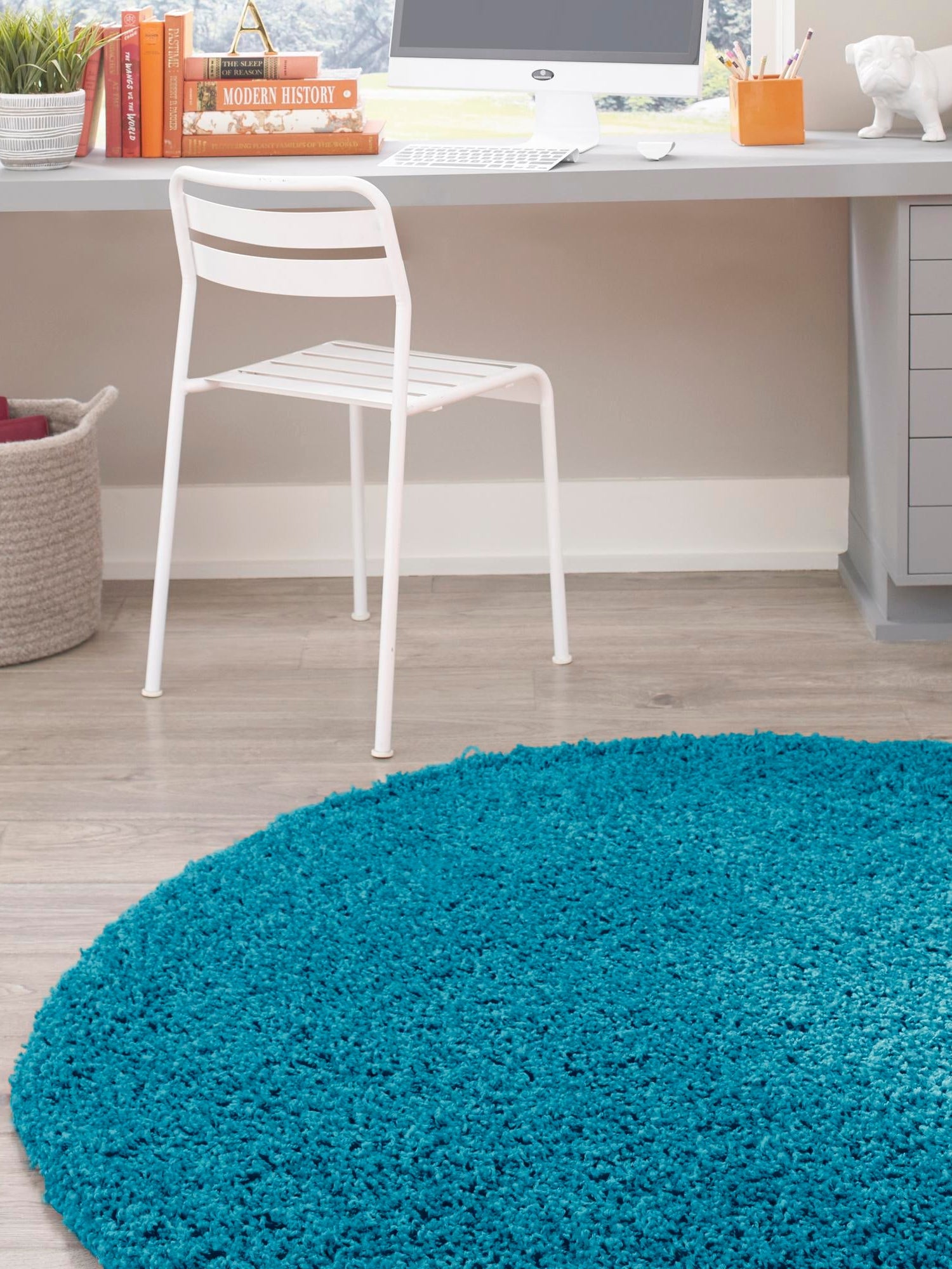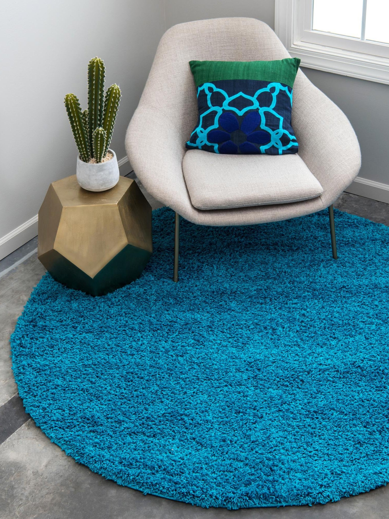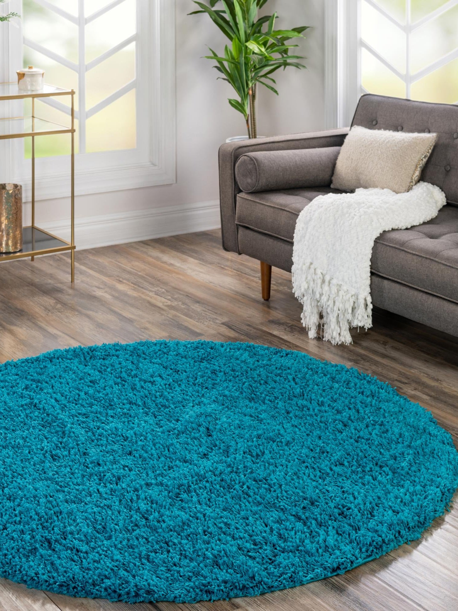 Turquoise 6' 1 x 6' 1 Solid Shag Round Area Rug Thick Soft Touch Fluffy & Plush Shaggy Pile