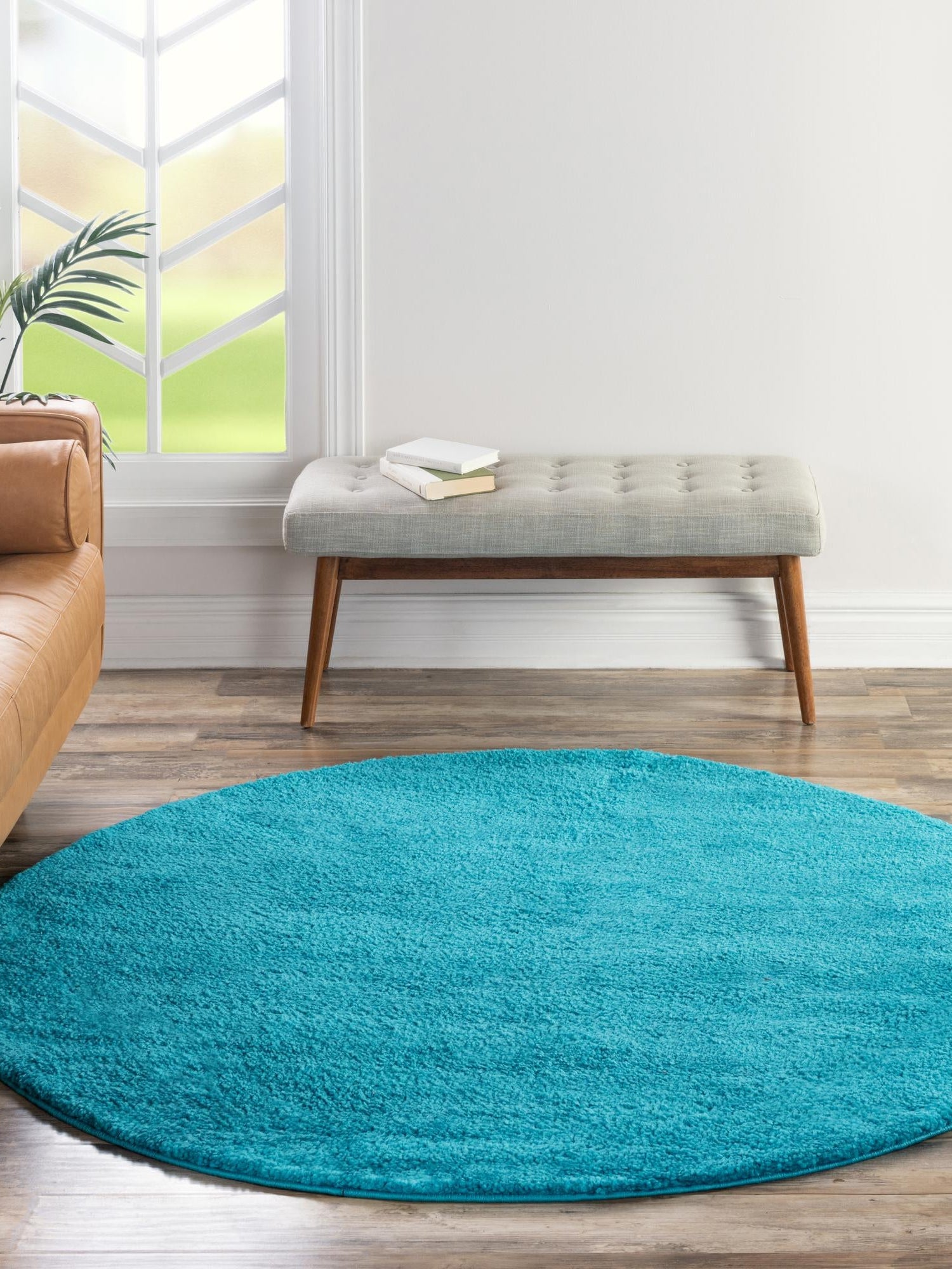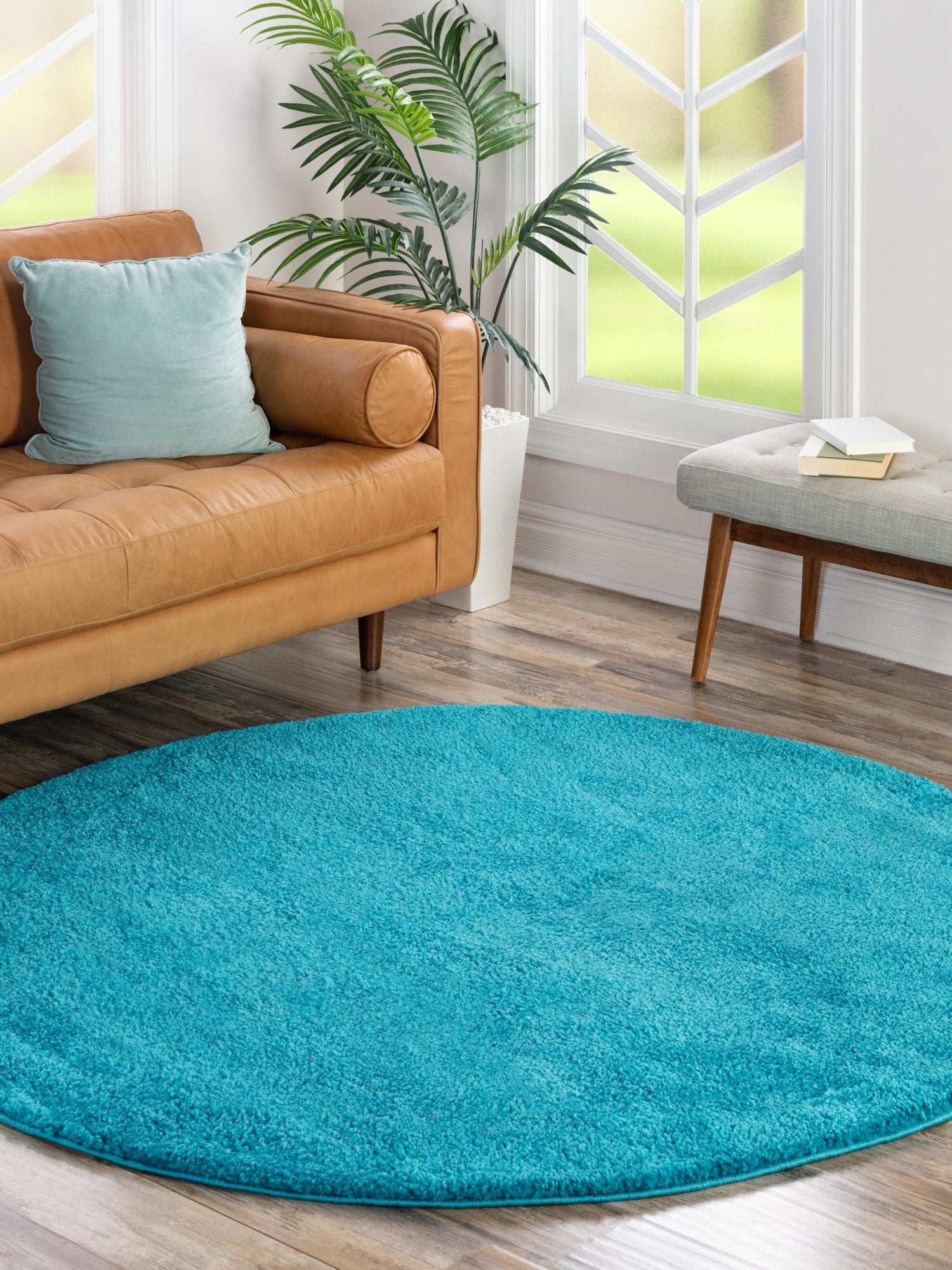 Turquoise 7' 10 x 7' 10 Solo Round Area Rug Thick Soft Touc...