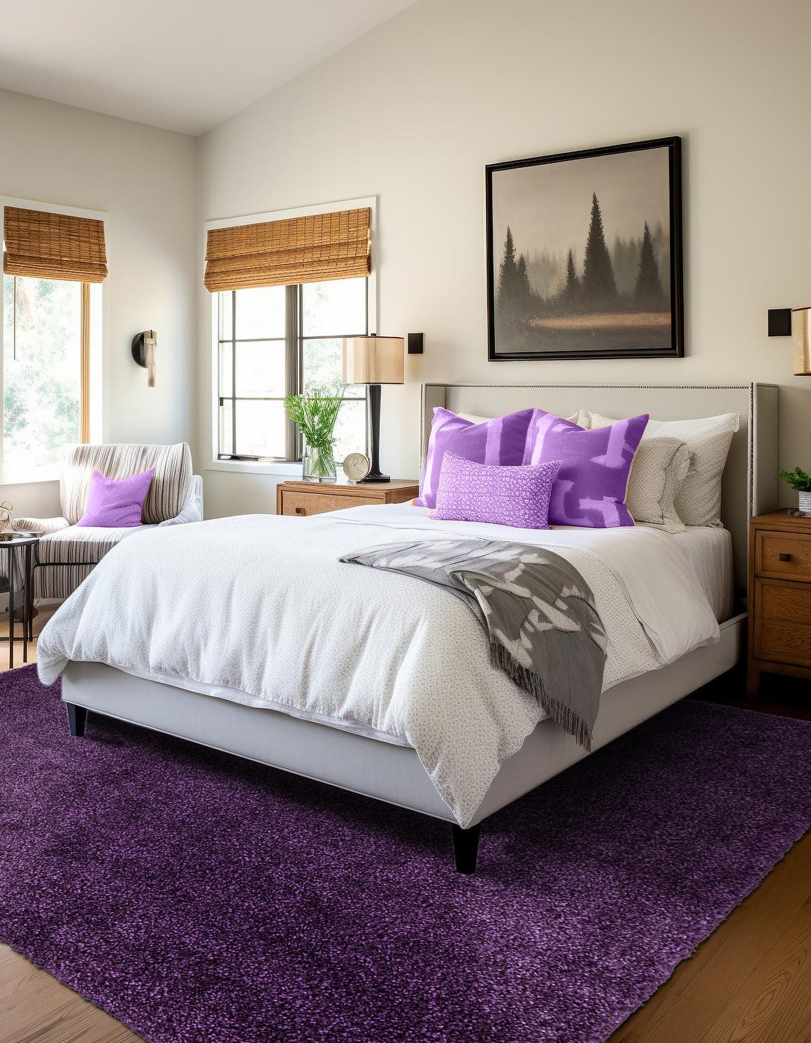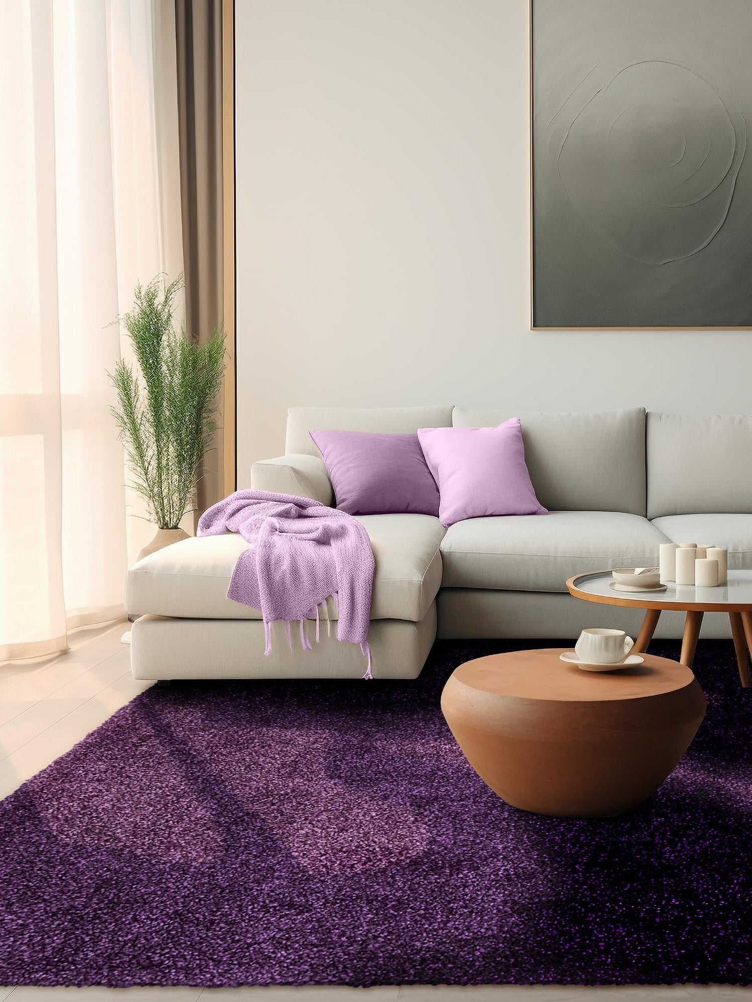 - Vibrant Color: Drenched in a rich violet hue, this rug adds a pop of color that invigorates your home décor. The bold shade complements a variety of design styles, from contemporary to traditional, allowing for versatility in any room. Let the eye-catching violet tone become a stunning focal point in your living space.