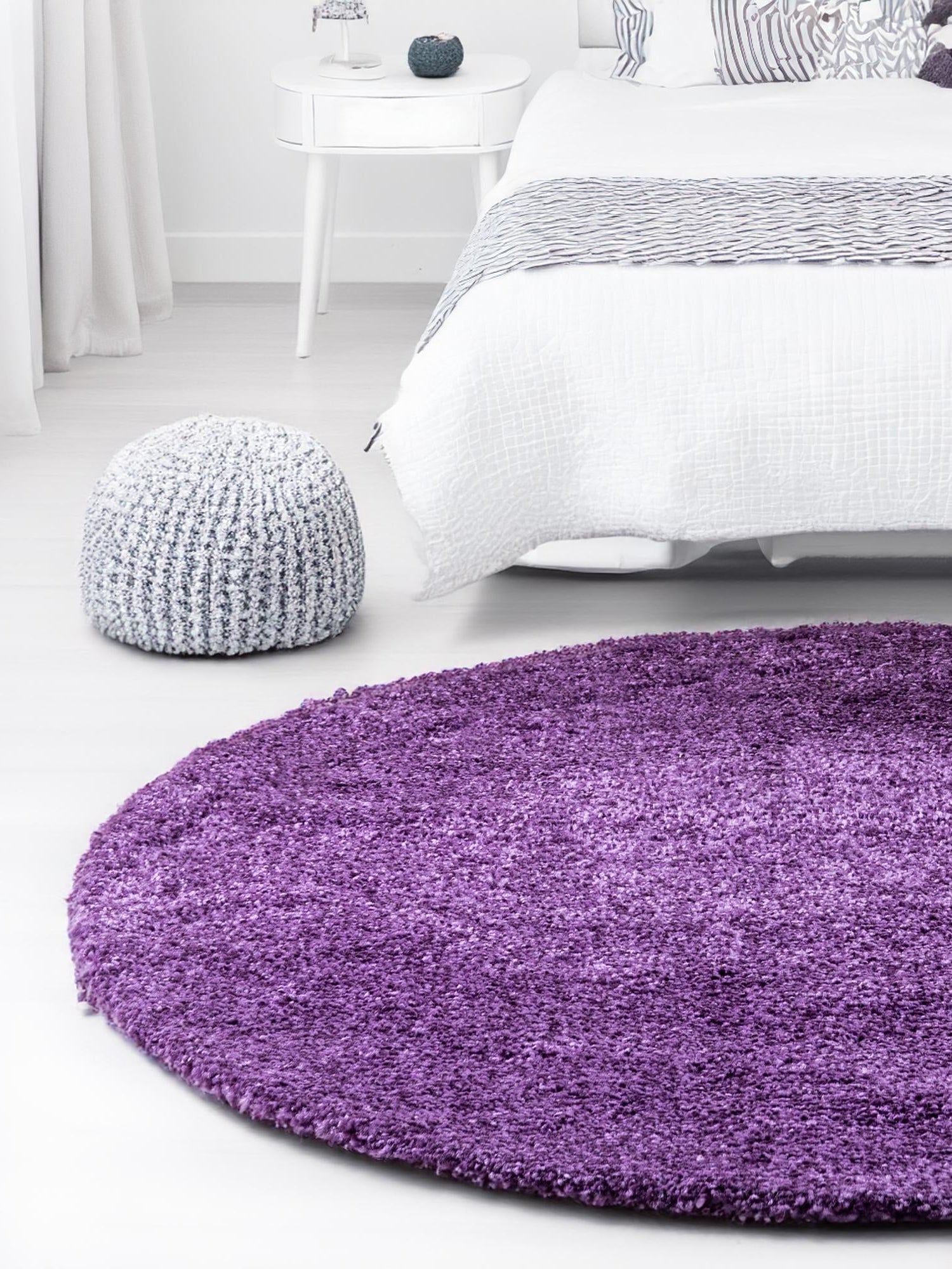 Violet 5' 3 x 5' 3 Solo Round Area Rug Thick Soft Touch Fluffy & Plush Shaggy Pile