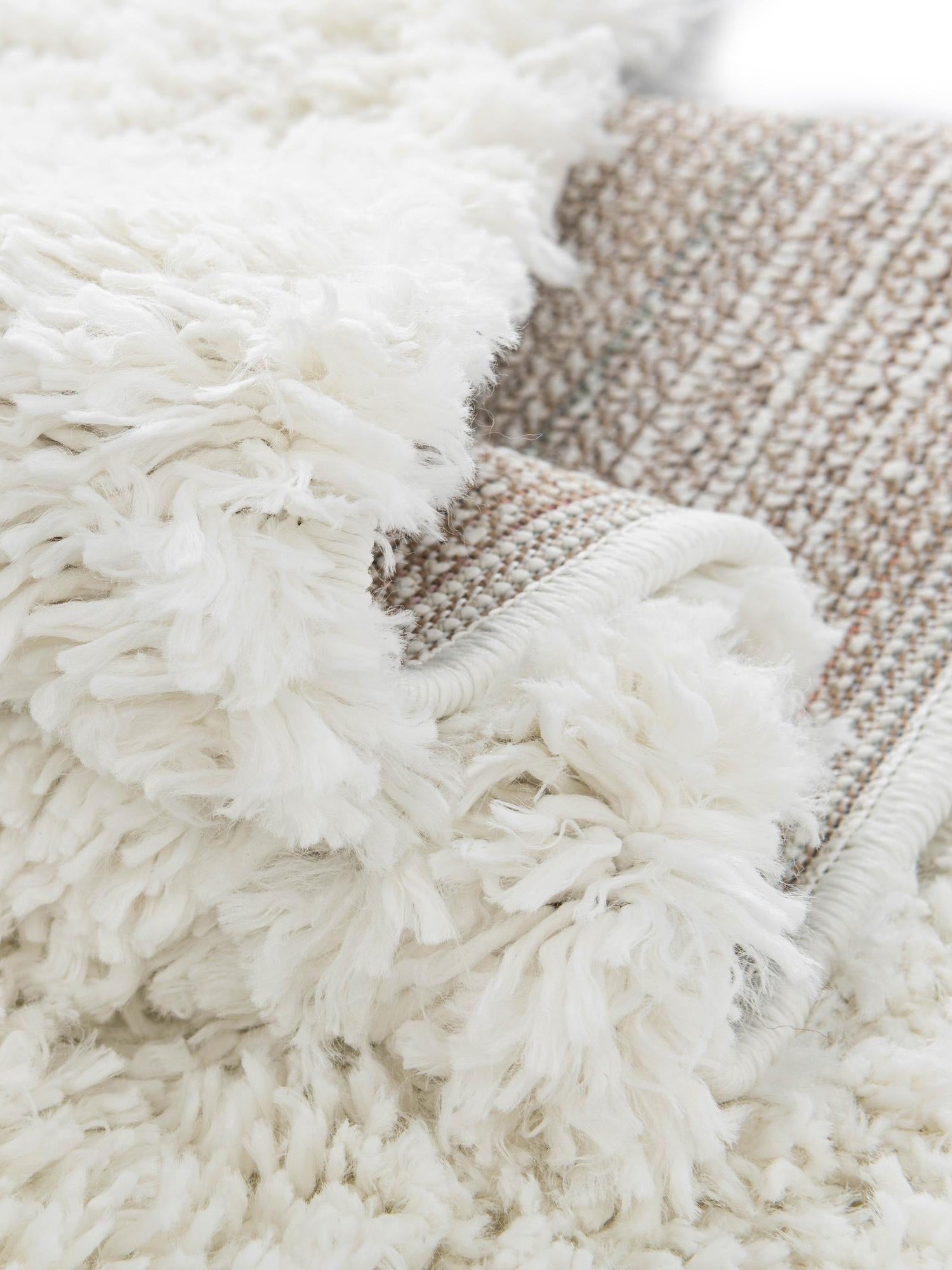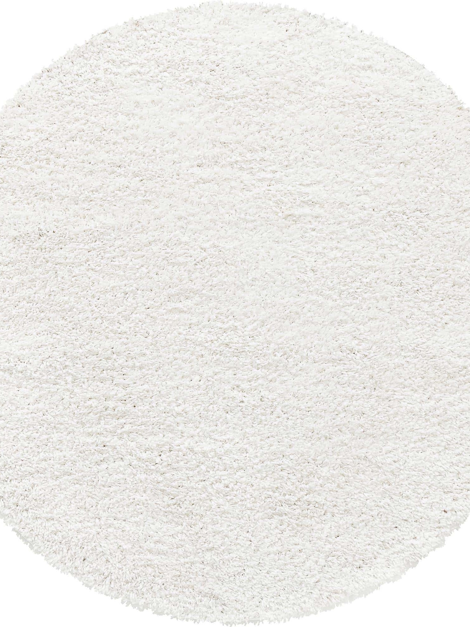 White 2' x 2' Davos Shag Round Area Rug Thick Soft Touch Fluffy & Plush Shaggy Pile 100% Polypropylene Carpet for Living Dining Bedrooms Office
