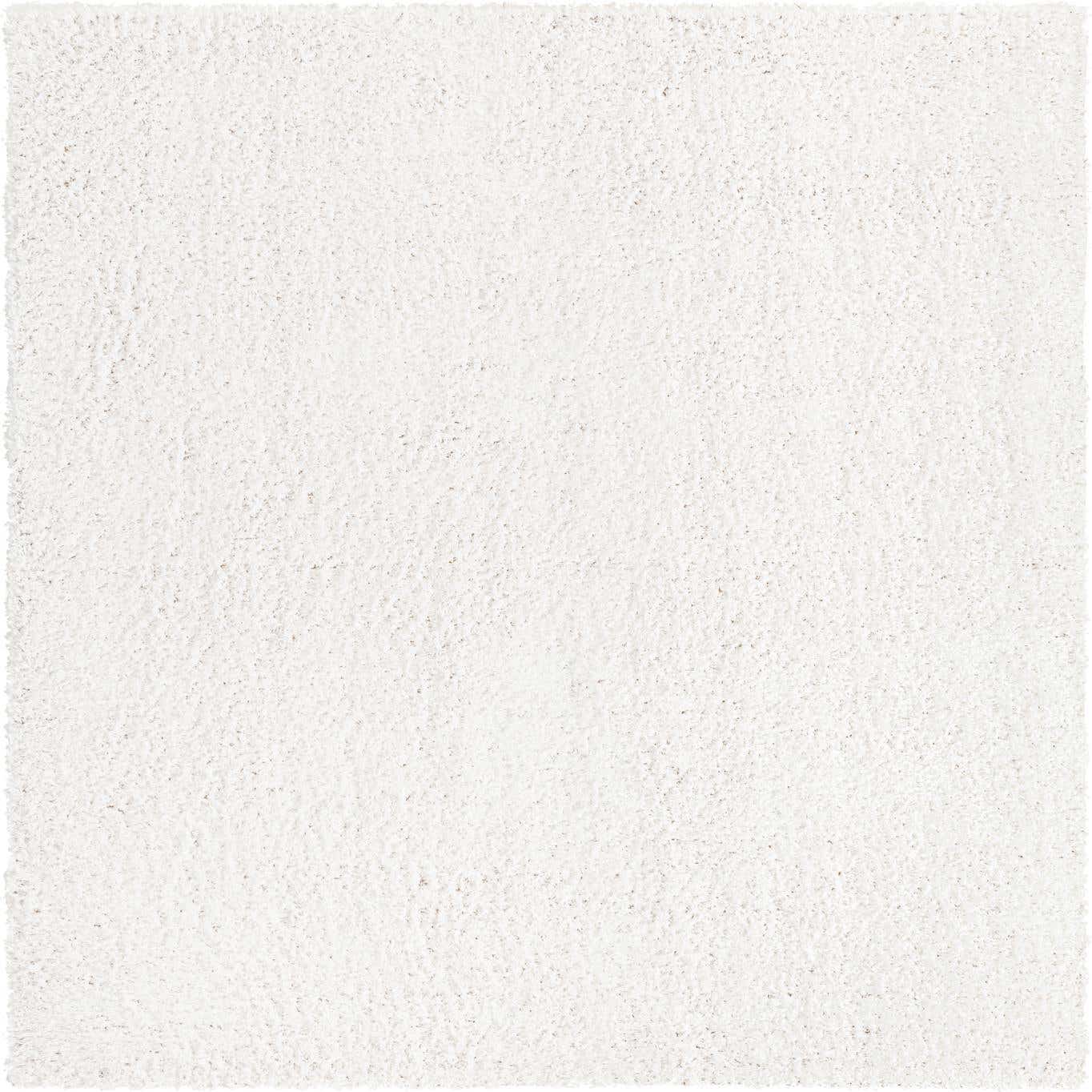 White 3' 1 x 3' 1 Davos Shag Square Area Rug Thick Soft Touch Fluffy & Plush Shaggy Pile 100% Polypropylene Carpet for Living Dining Bedrooms Office
