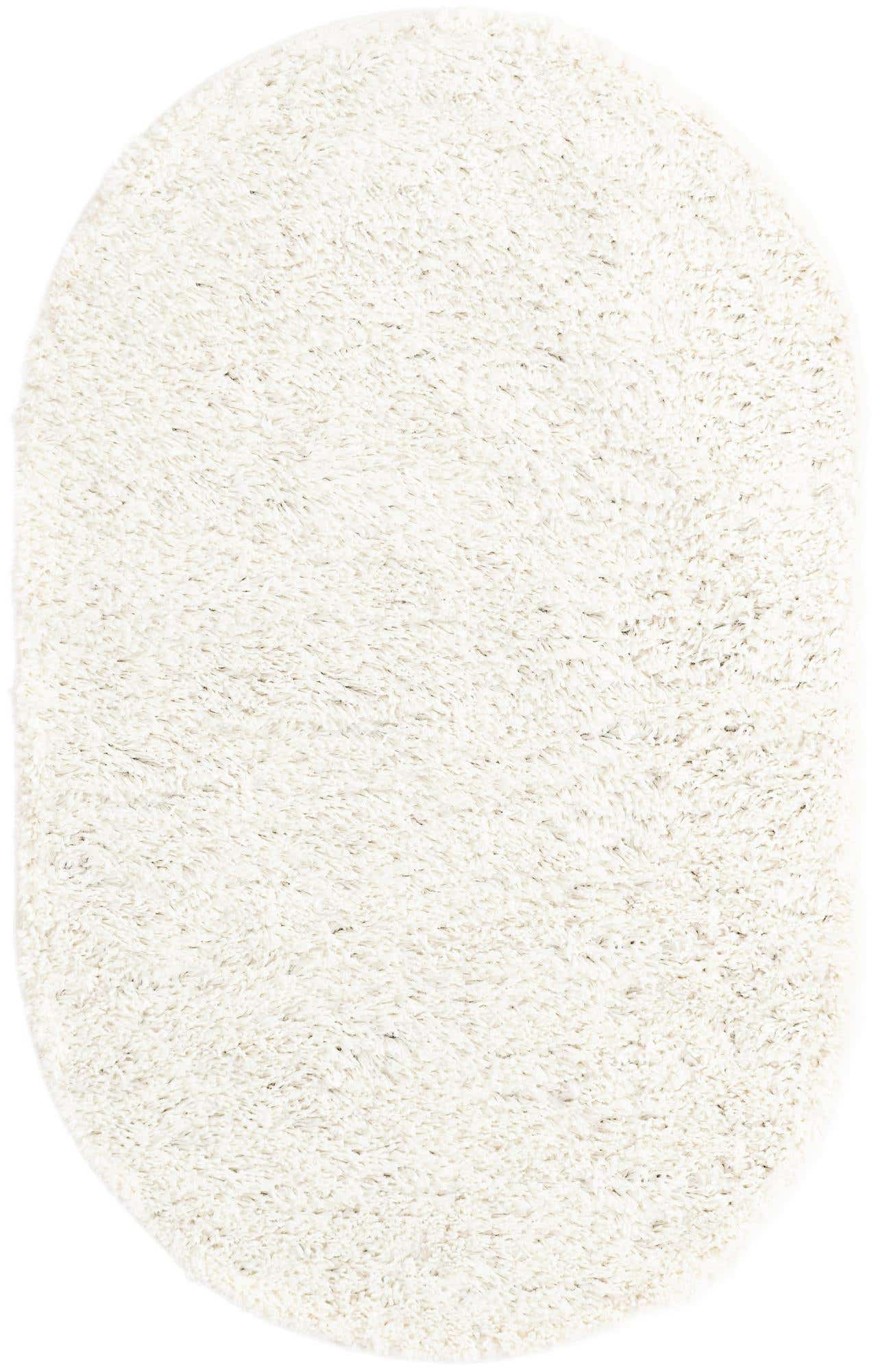 White 3' 1 x 5' 3 Davos Shag Oval Area Rug Thick Soft Touch Fluffy & Plush Shaggy Pile 100% Polypropylene Carpet for Living Dining Bedrooms Office