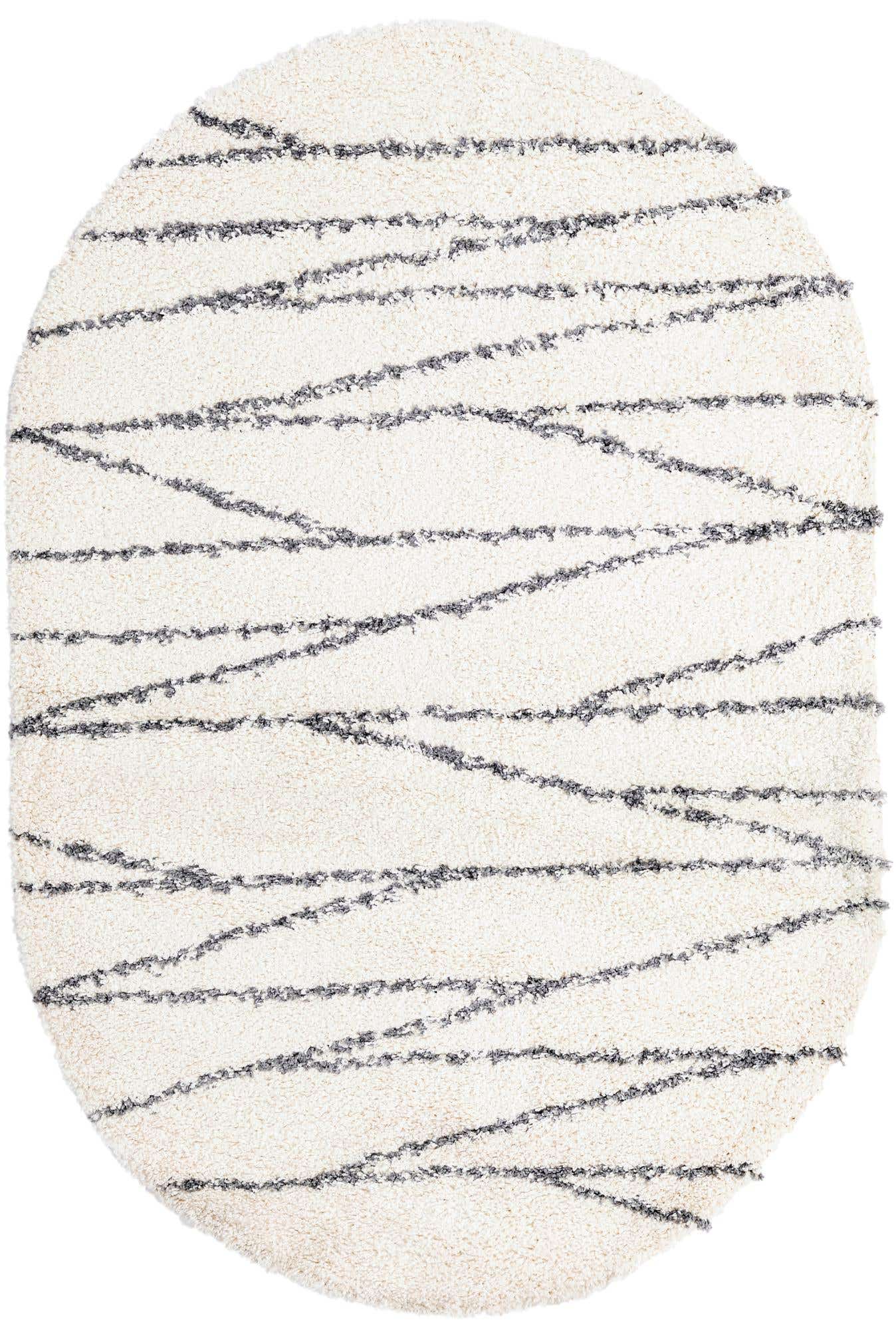 White 5' 3 x 8' Serenity Shag Oval Area Rug Thick Soft Touc...