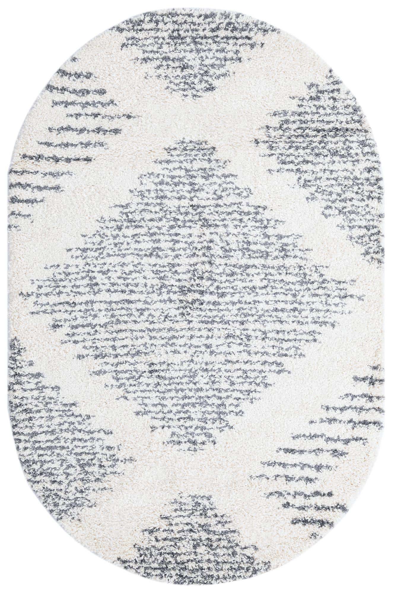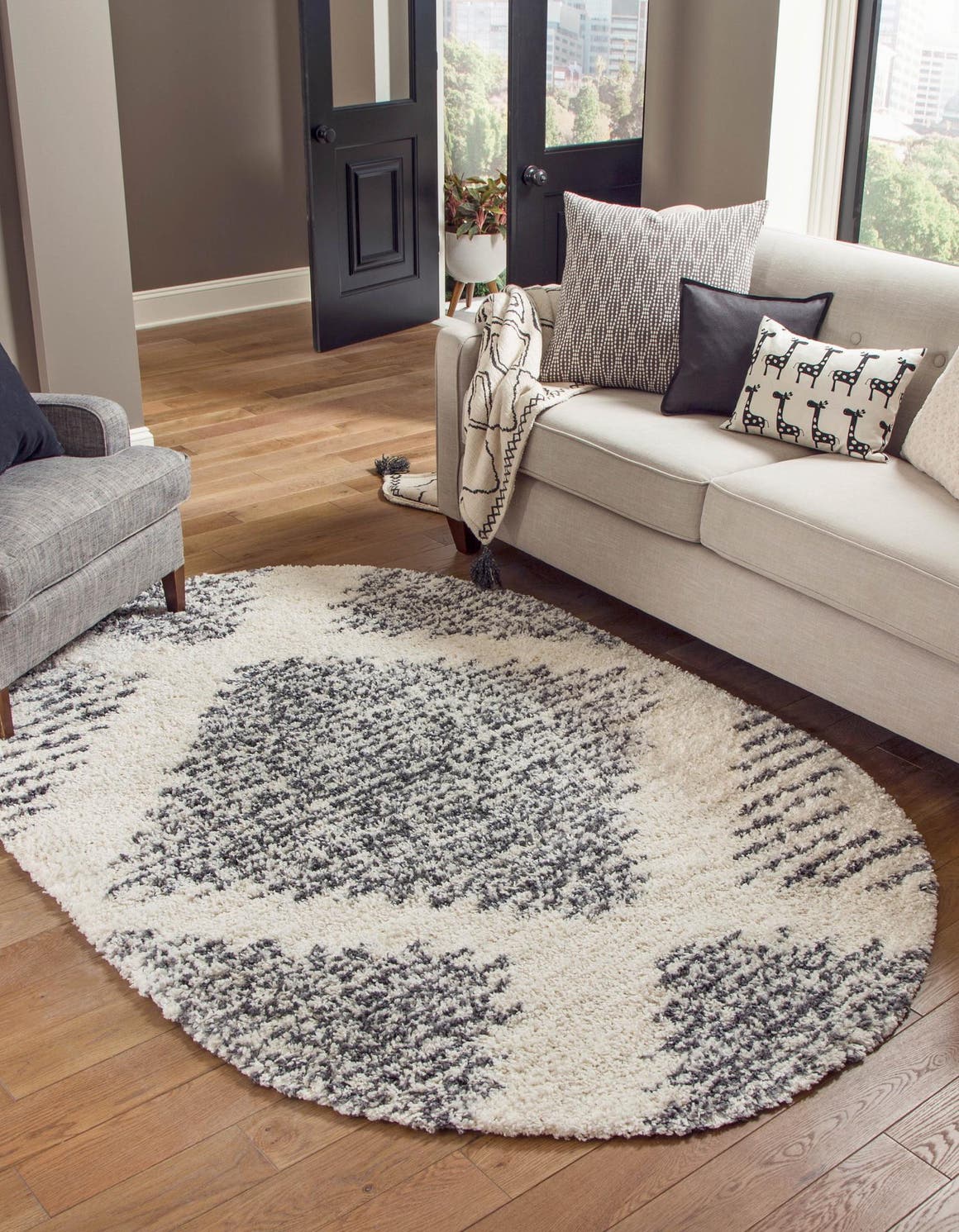 White 5' 3 x 8' Serenity Shag Oval Area Rug Thick Soft Touc...