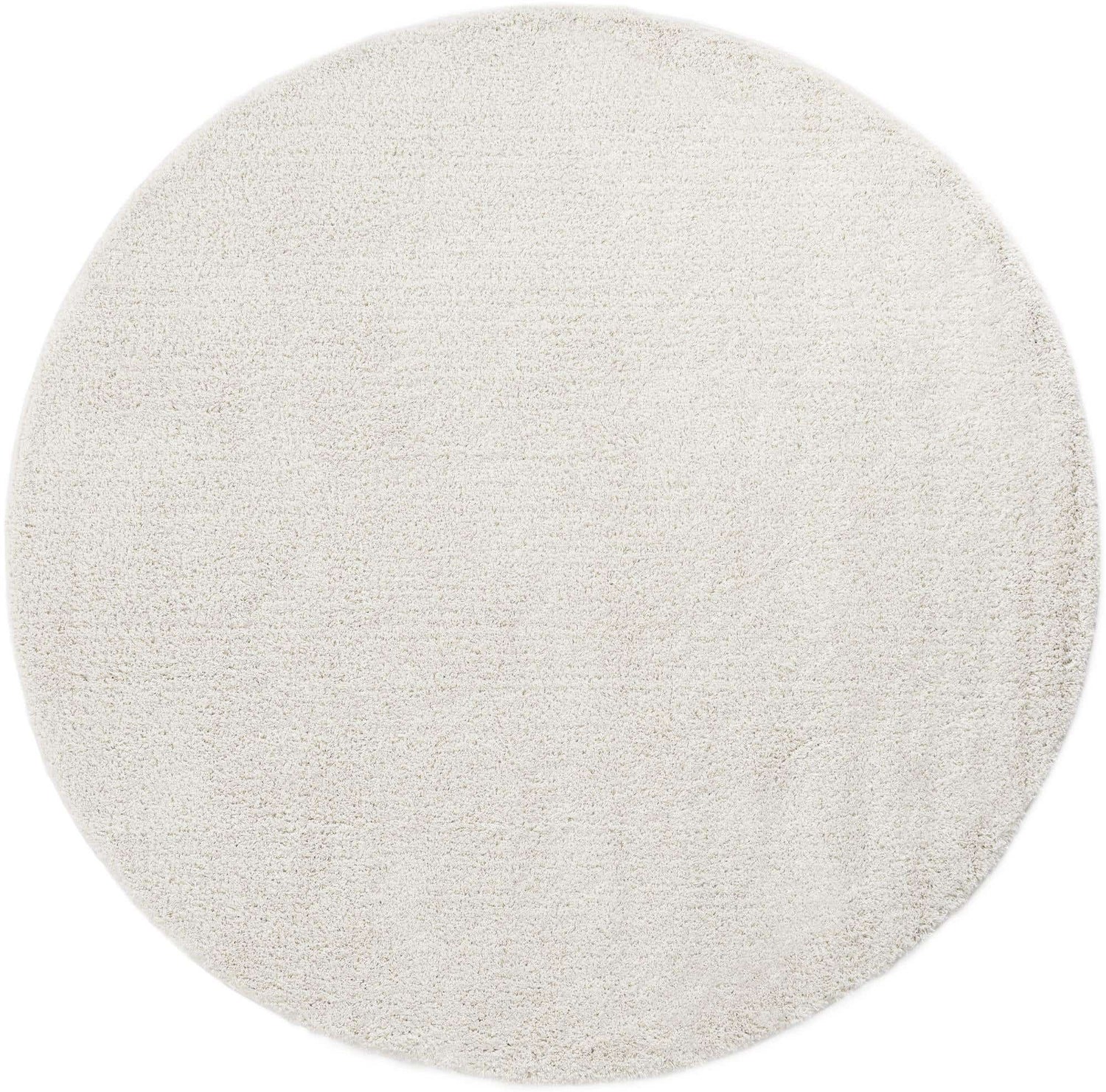 White 7' 1 x 7' 1 Soft Solid Shag Round Area Rug Thick Soft Touch Fluffy & Plush Shaggy Pile