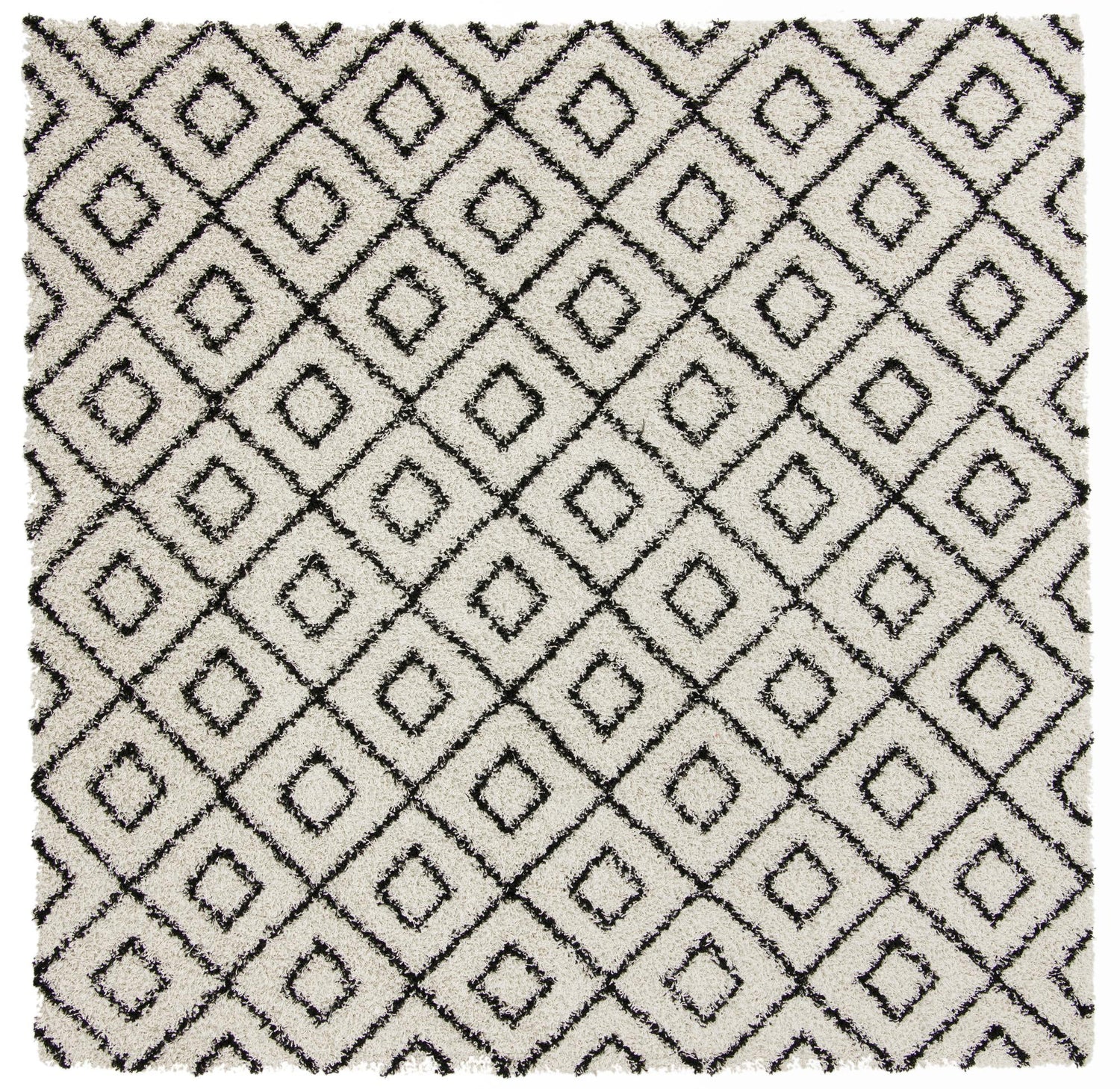 White and Black 10' x 10' Trellis Shag Square Area Rug Thic...