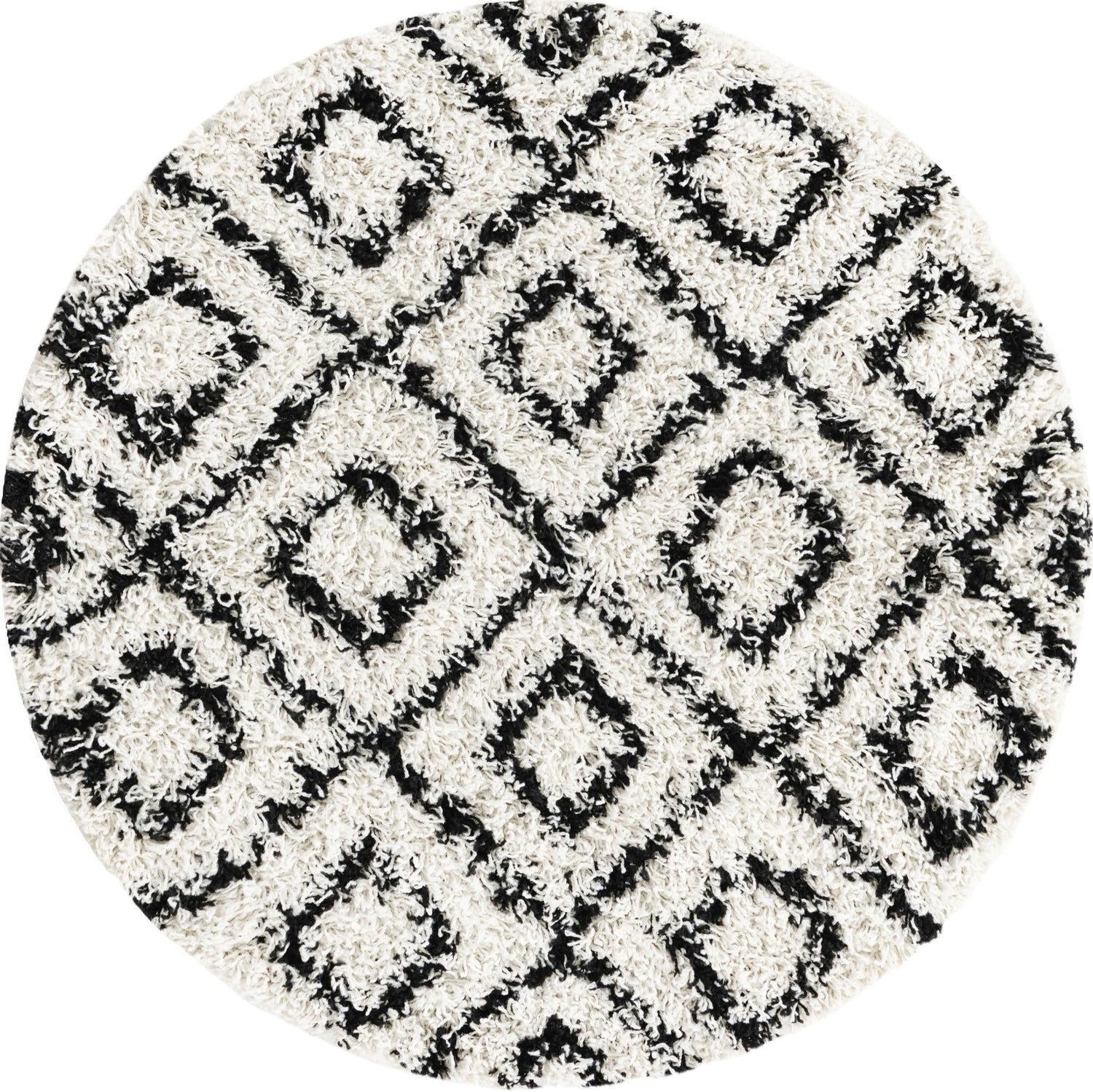 White and Black 3' 3 x 3' 3 Trellis Shag Round Area Rug Thi...