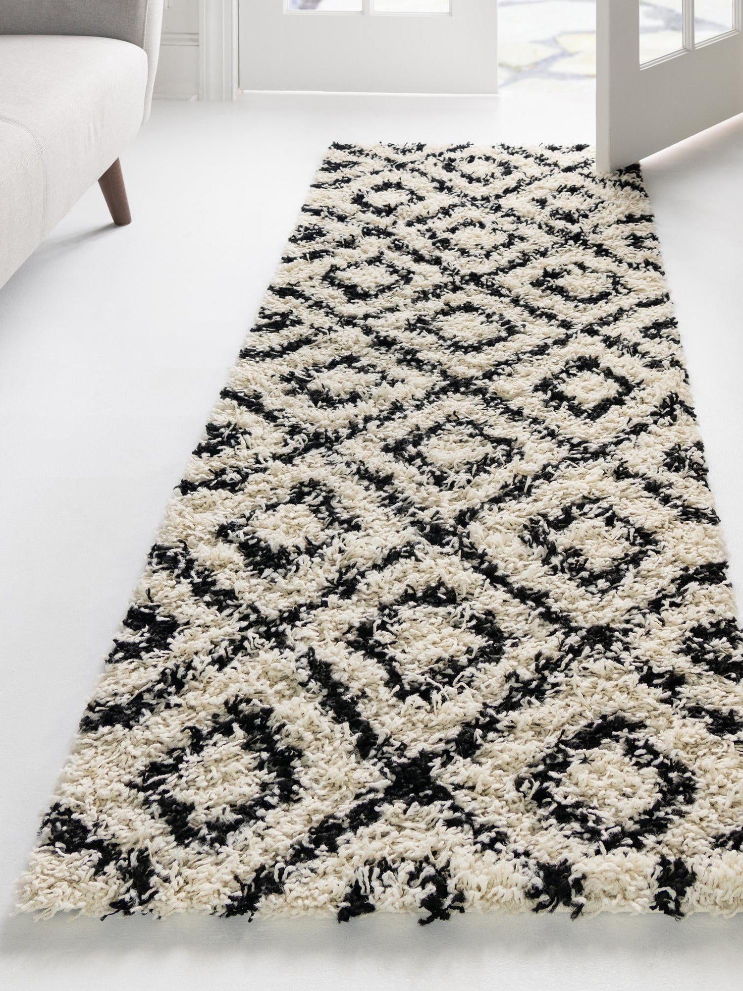White and Black 2' 7 x 12' Trellis Shag Runner Area Rug Thi...