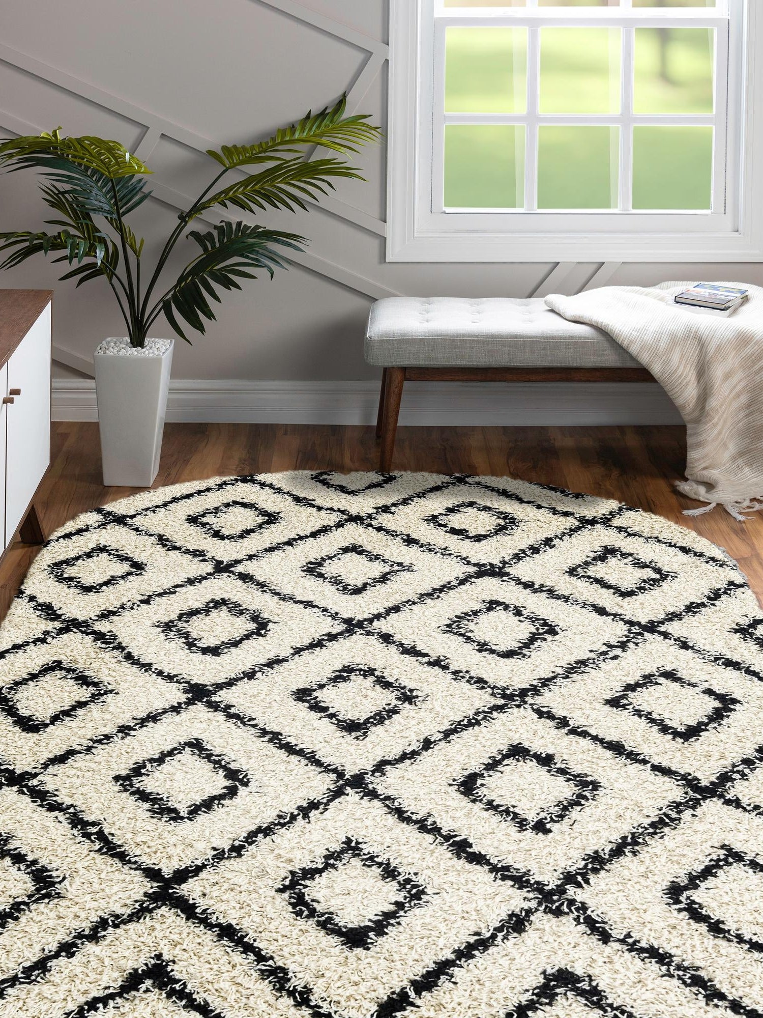 - Geometric and Modern Design: Featuring a trendy trellis shag pattern, this rug is designed to bring a touch of modernity to your home. The geometric shapes create visual interest, making it a standout piece in any room. Elevate your decor with a rug that reflects your contemporary taste.