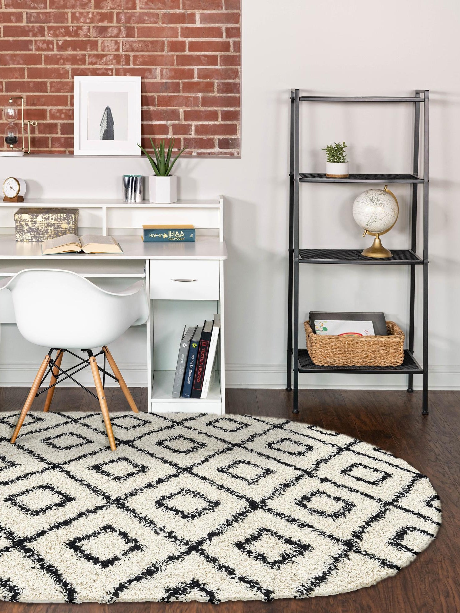 White and Black 4' x 6' Trellis Shag Oval Area Rug Thick So...