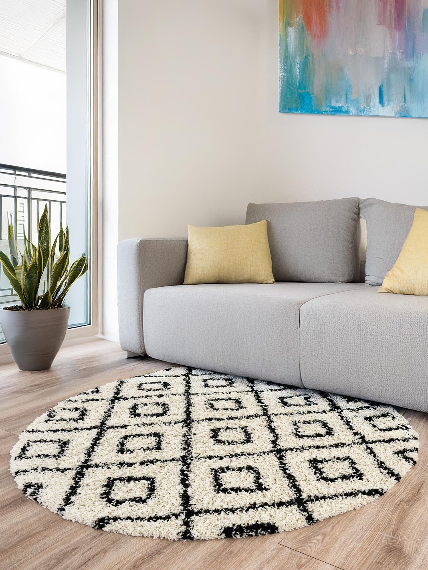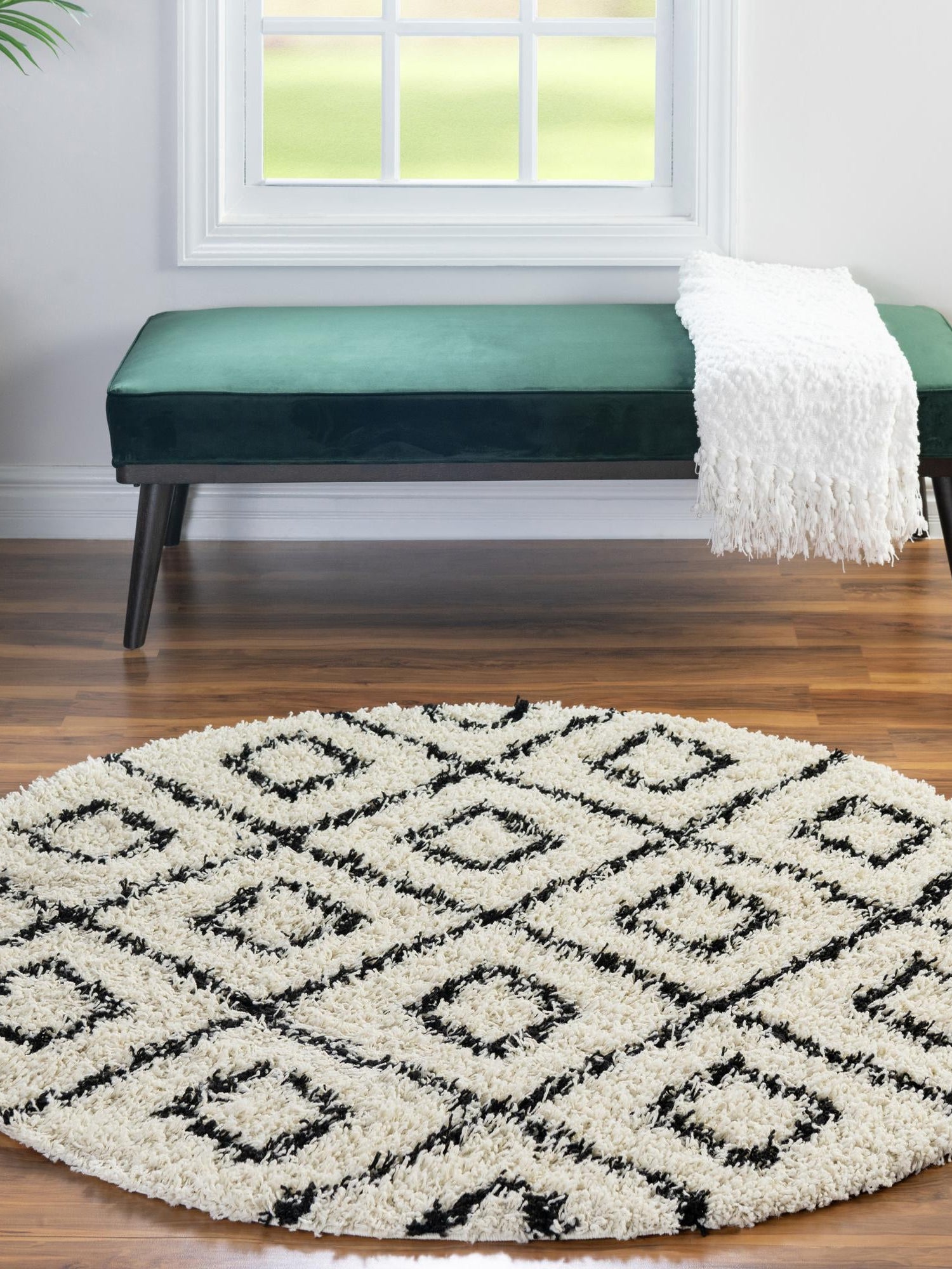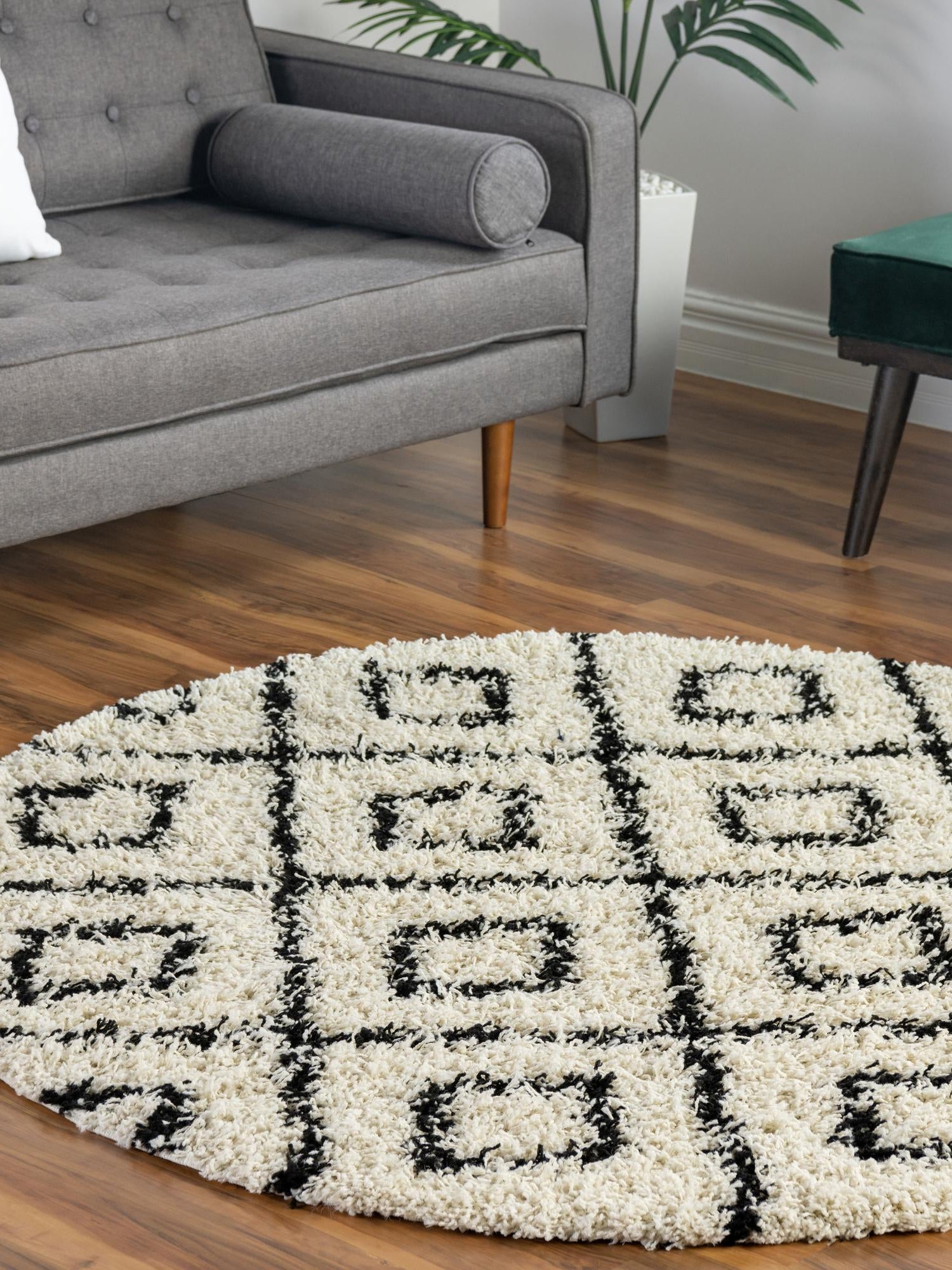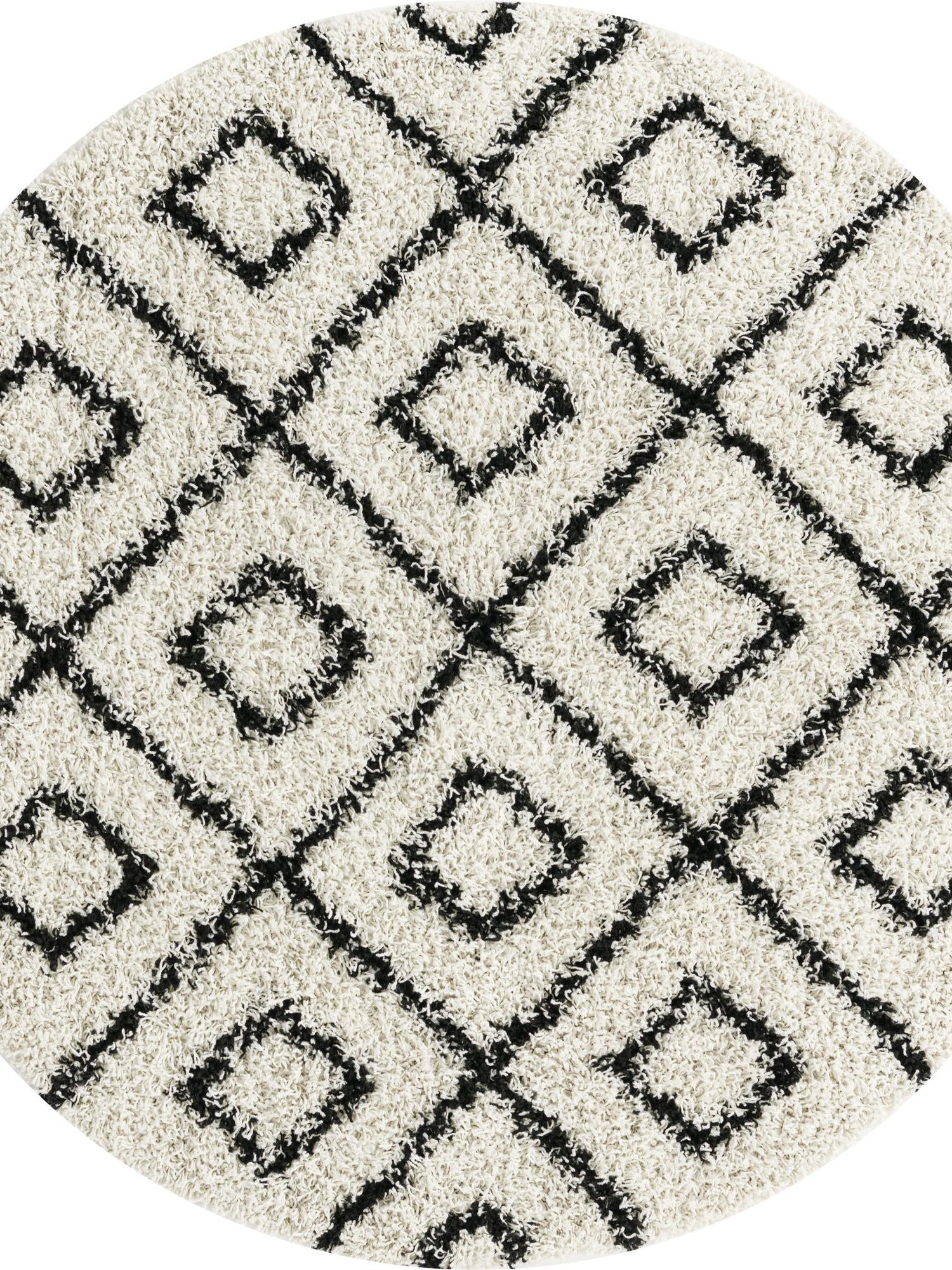 White and Black 5' 3 x 5' 3 Trellis Shag Round Area Rug Thick Soft Touch Fluffy & Plush Shaggy Pile