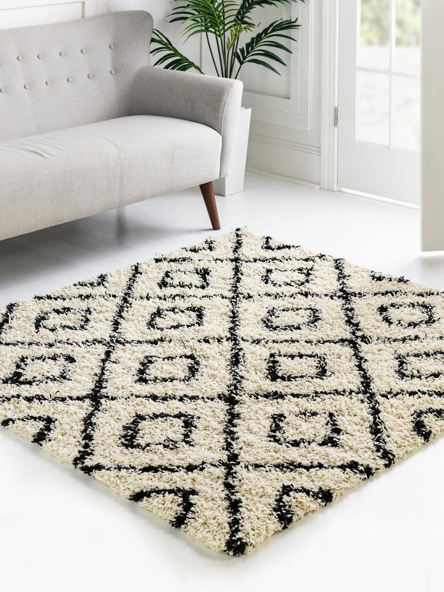 White and Black 5' 3 x 5' 3 Trellis Shag Square Area Rug Th...