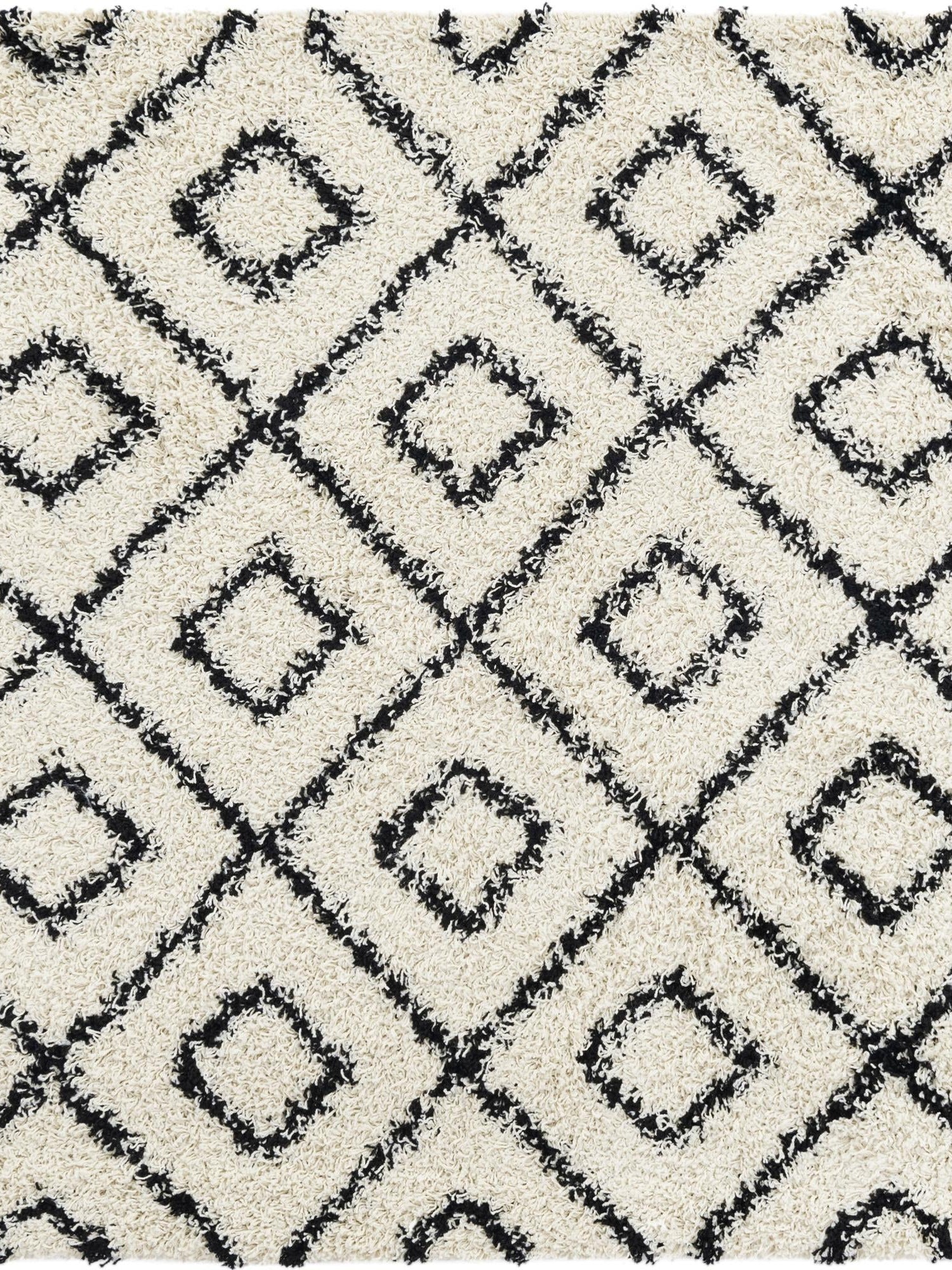 White and Black 5' 3 x 5' 3 Trellis Shag Square Area Rug Thick Soft Touch Fluffy & Plush Shaggy Pile