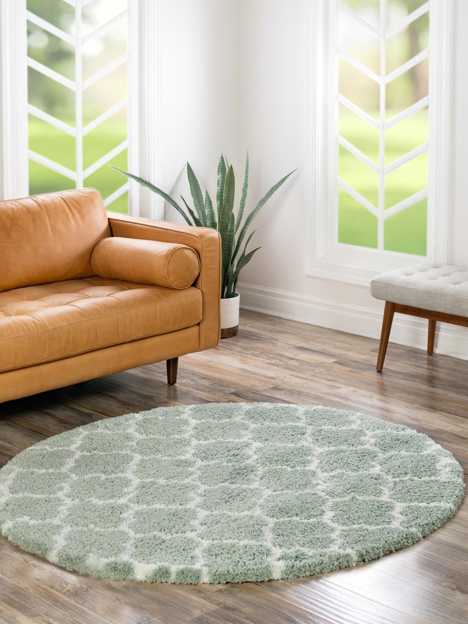 White Cyan 7' 10 x 7' 10 Rabat Shag Round Area Rug Thick Soft Touch Fluffy & Plush Shaggy Pile