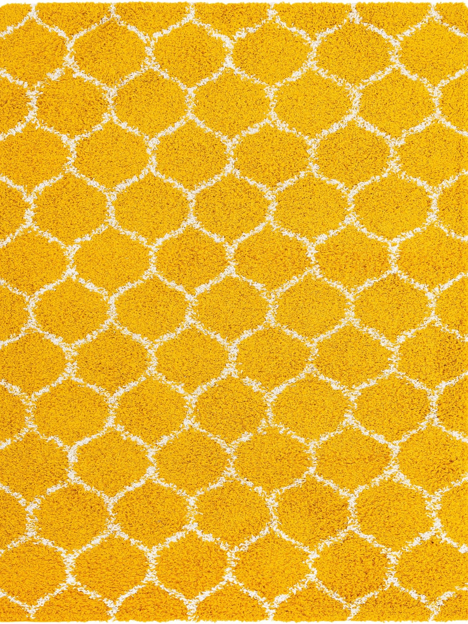 Yellow 10' x 13' Trellis Shag Rectangle Area Rug Thick Soft Touch Fluffy & Plush Shaggy Pile
