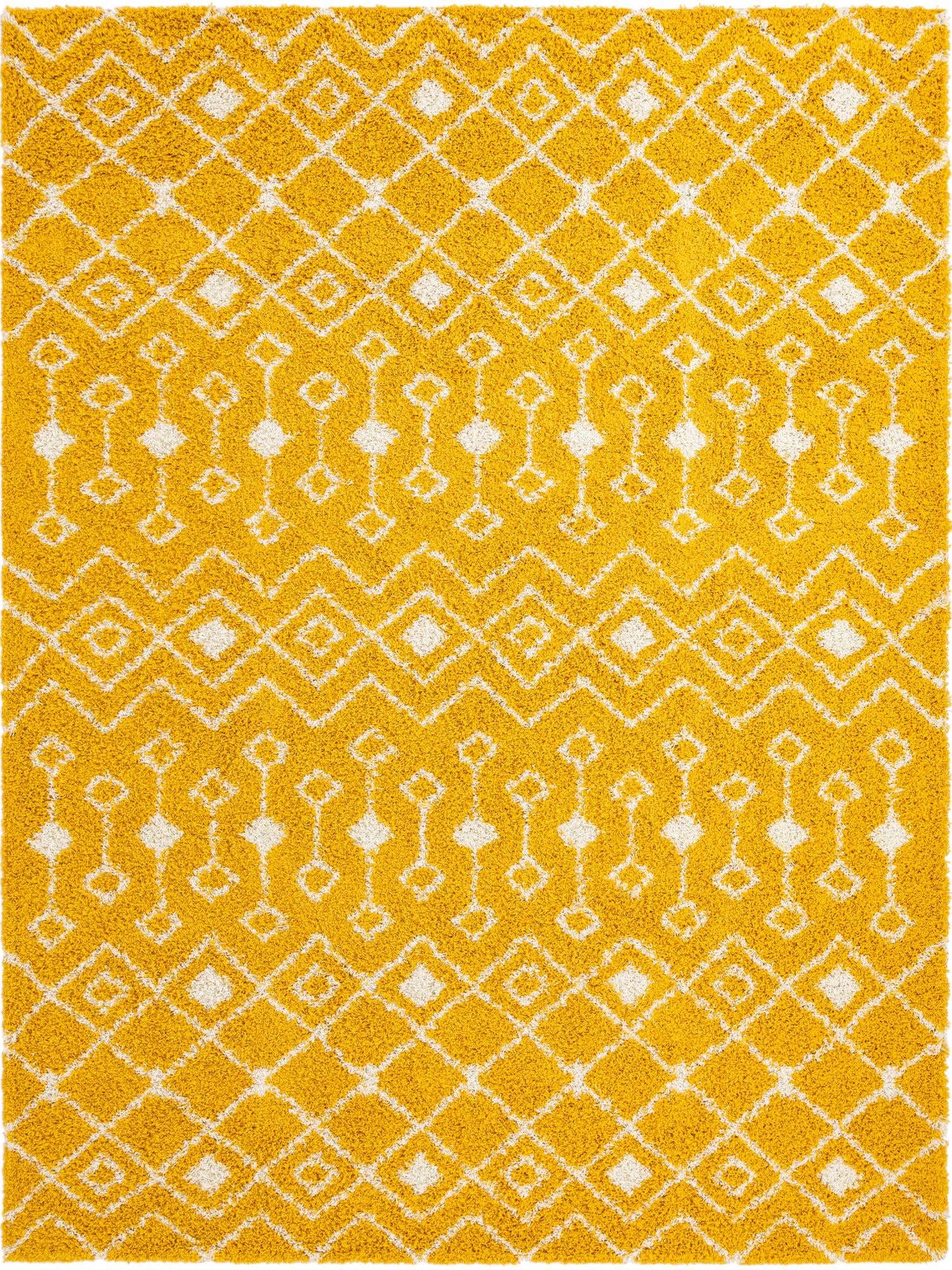Yellow 10' x 14' 1 Moroccan Trellis Shag Rectangle Area Rug Thick Soft Touch Fluffy & Plush Shaggy Pile