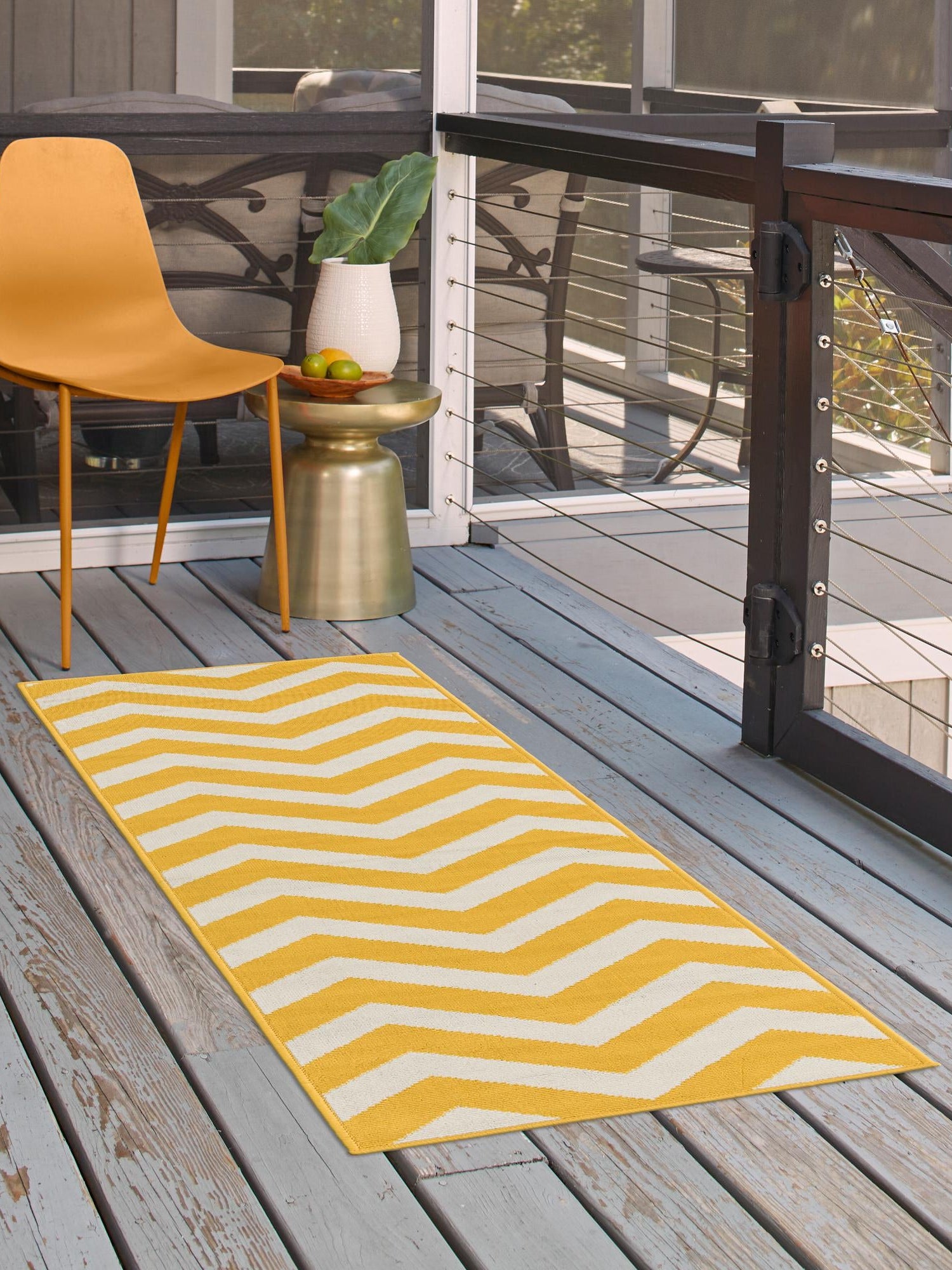 - Vibrant Design: Experience a stunning splash of color with this yellow outdoor runner rug. Its bright hue effortlessly enhances your outdoor spaces, creating a welcoming and cheerful environment perfect for entertaining guests. The modern design complements various decor styles, adding a fresh touch to patios, decks, and entryways.
