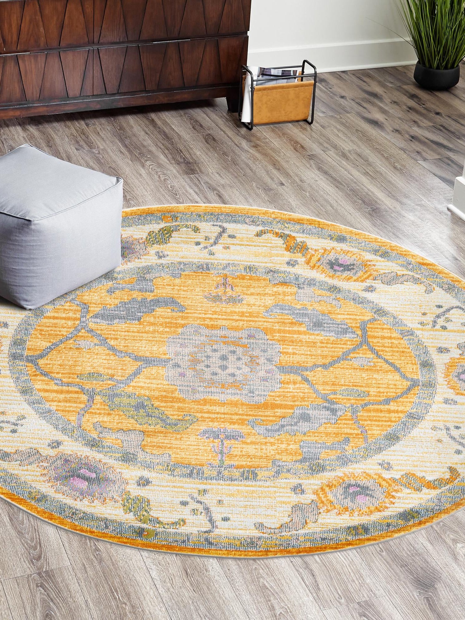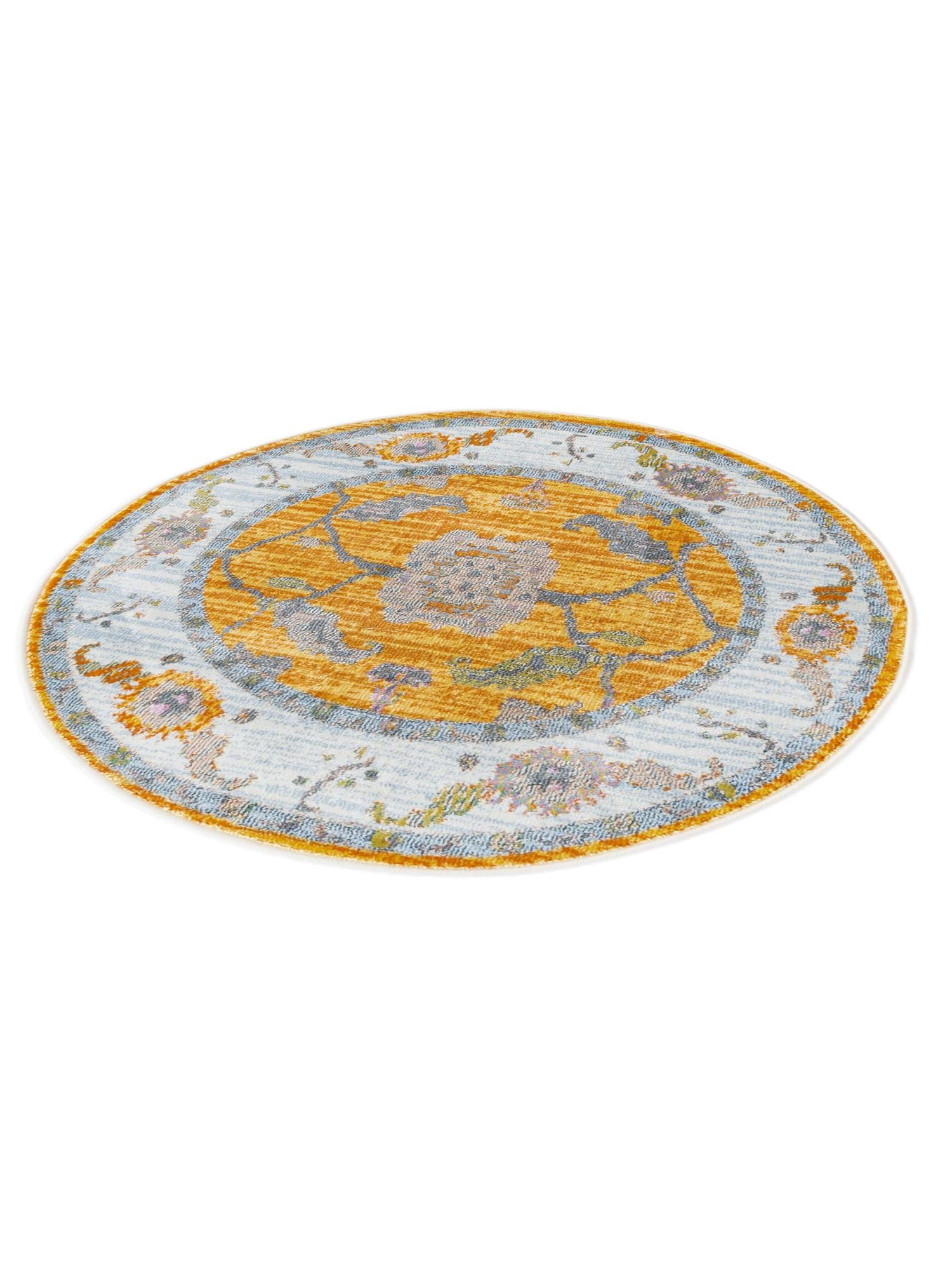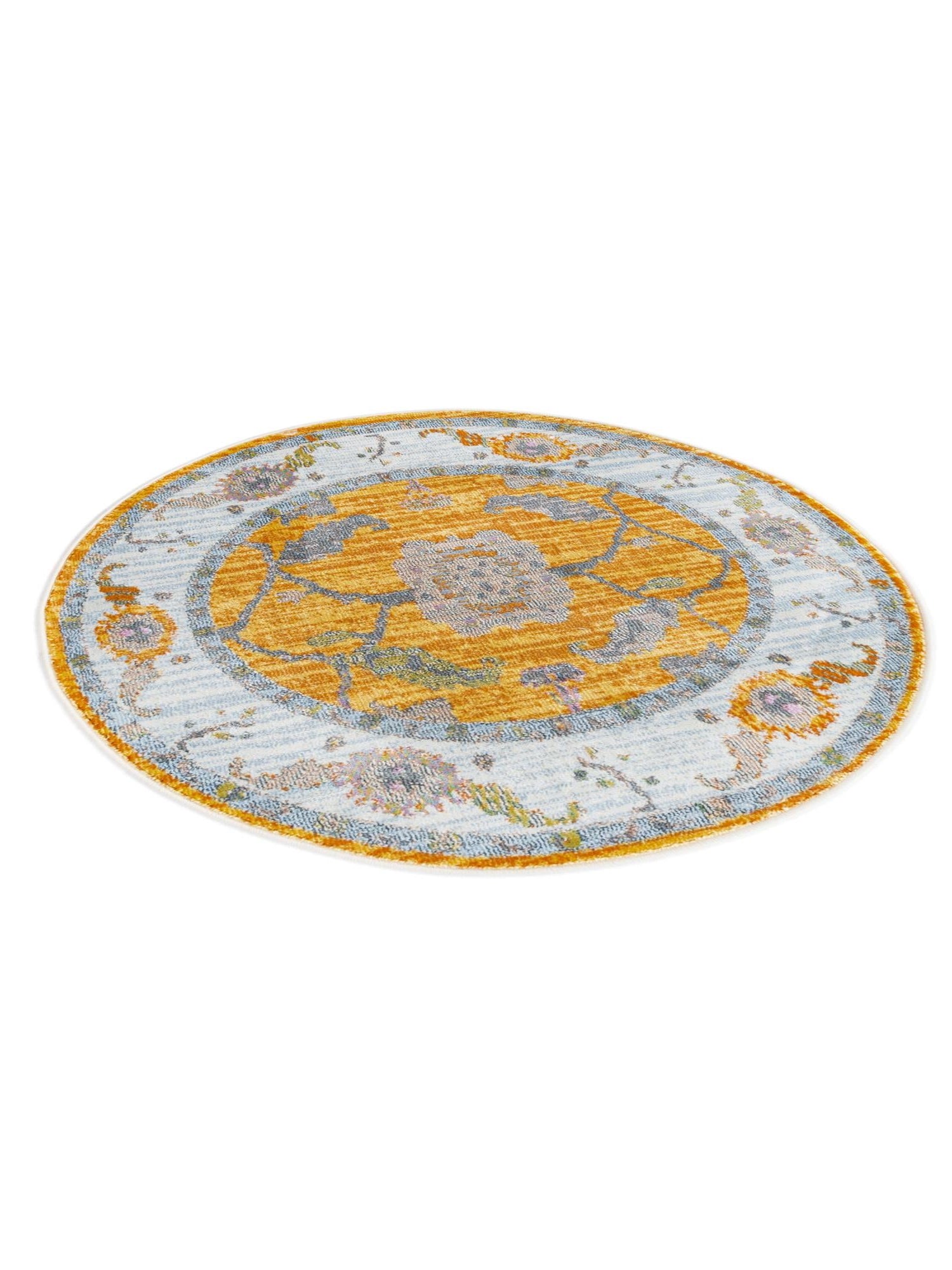 Yellow 3' 3 x 3' 3 Paragon Round Area Rug 100% Polypropylene Colorful Vivid Boho Style Modern Carpet for Unique Interiors